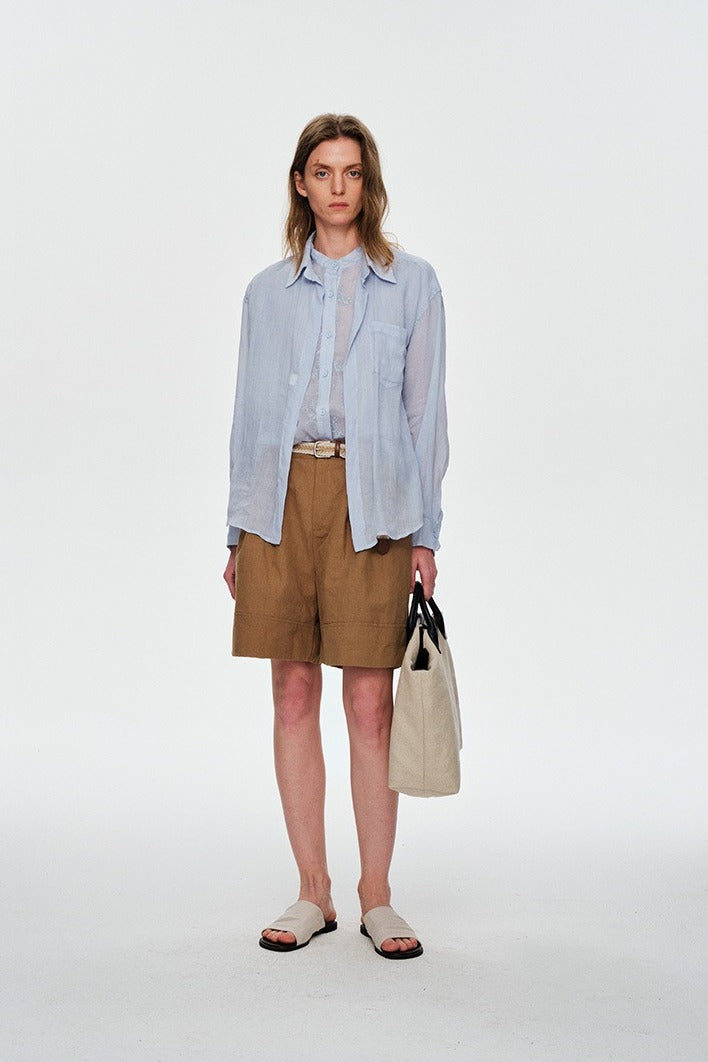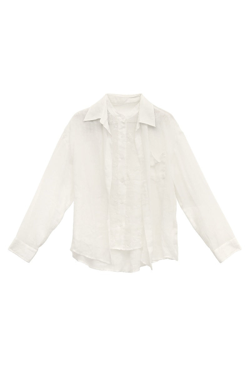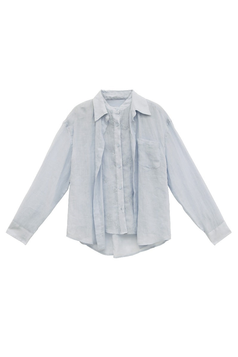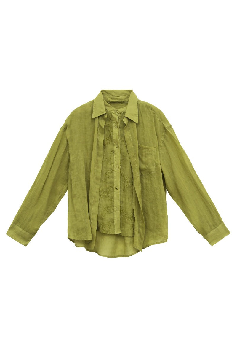 100% ramie lightweight faux-layer embroidery shirt | 3 color
