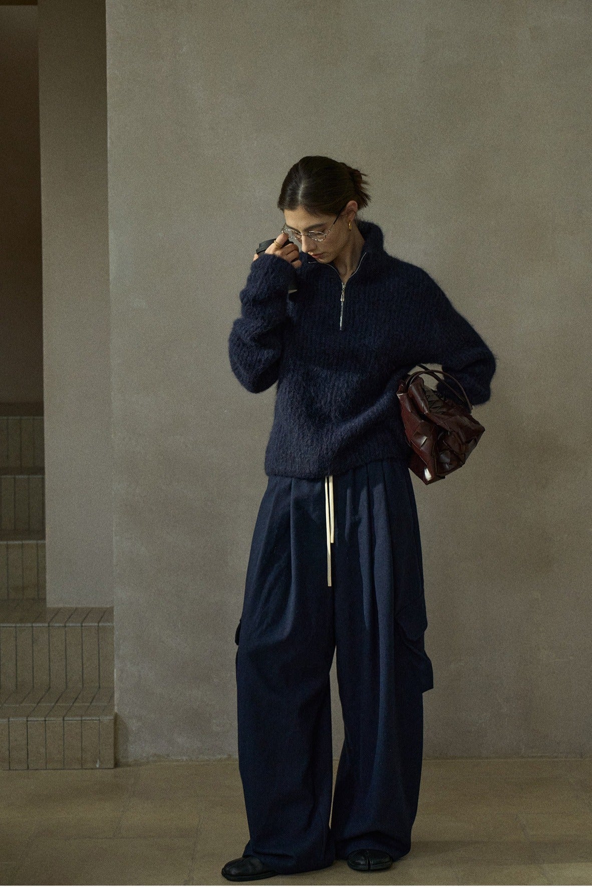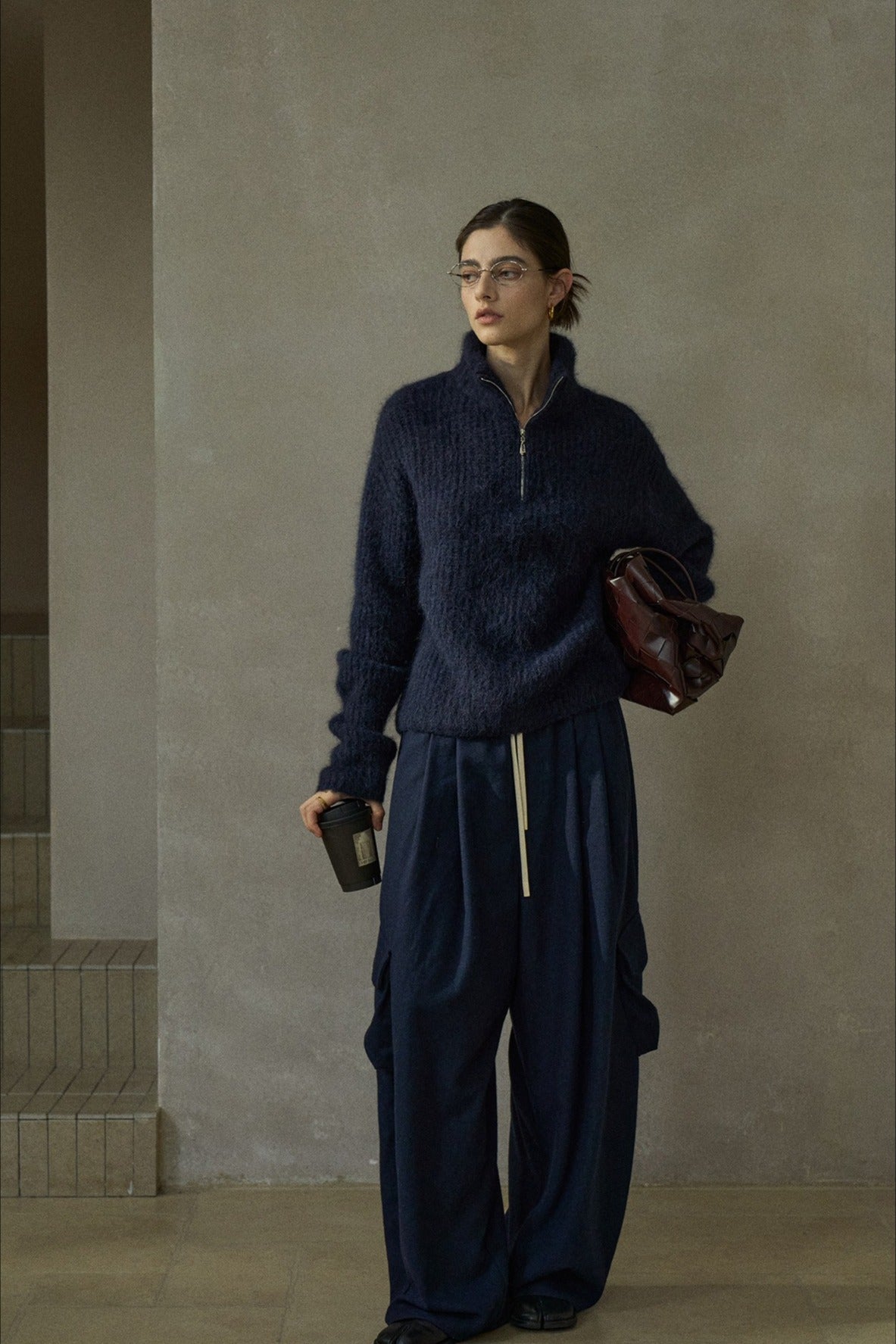 This long, zippered turtleneck sweater is made from a soft and fluffy alpaca blend. The textured knit adds a touch of luxury, making it perfect for cozy, stylish wear.