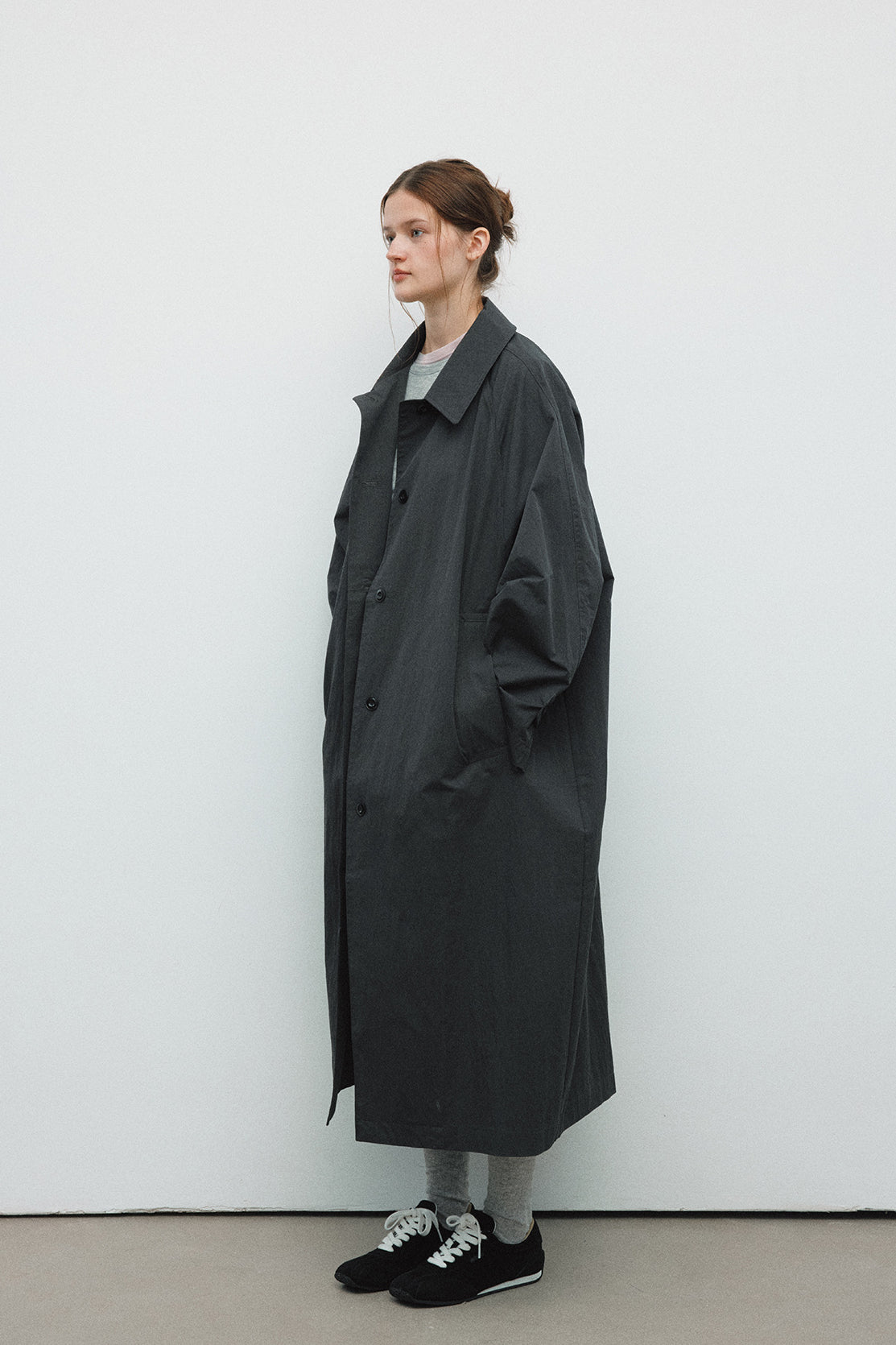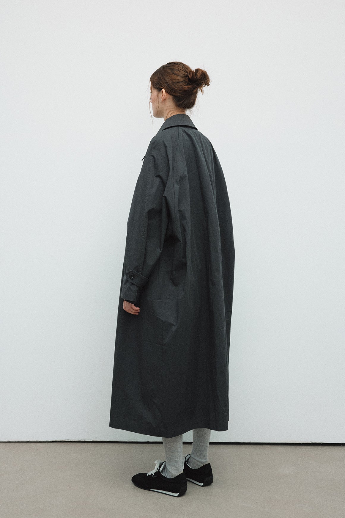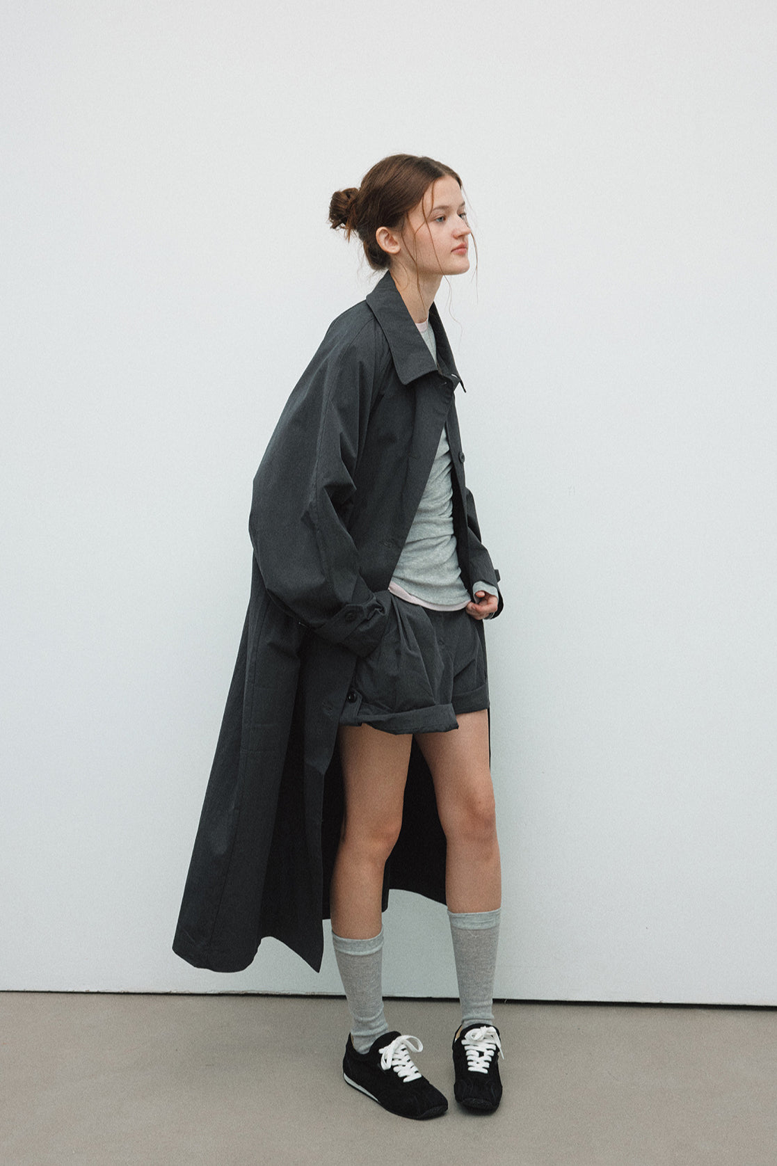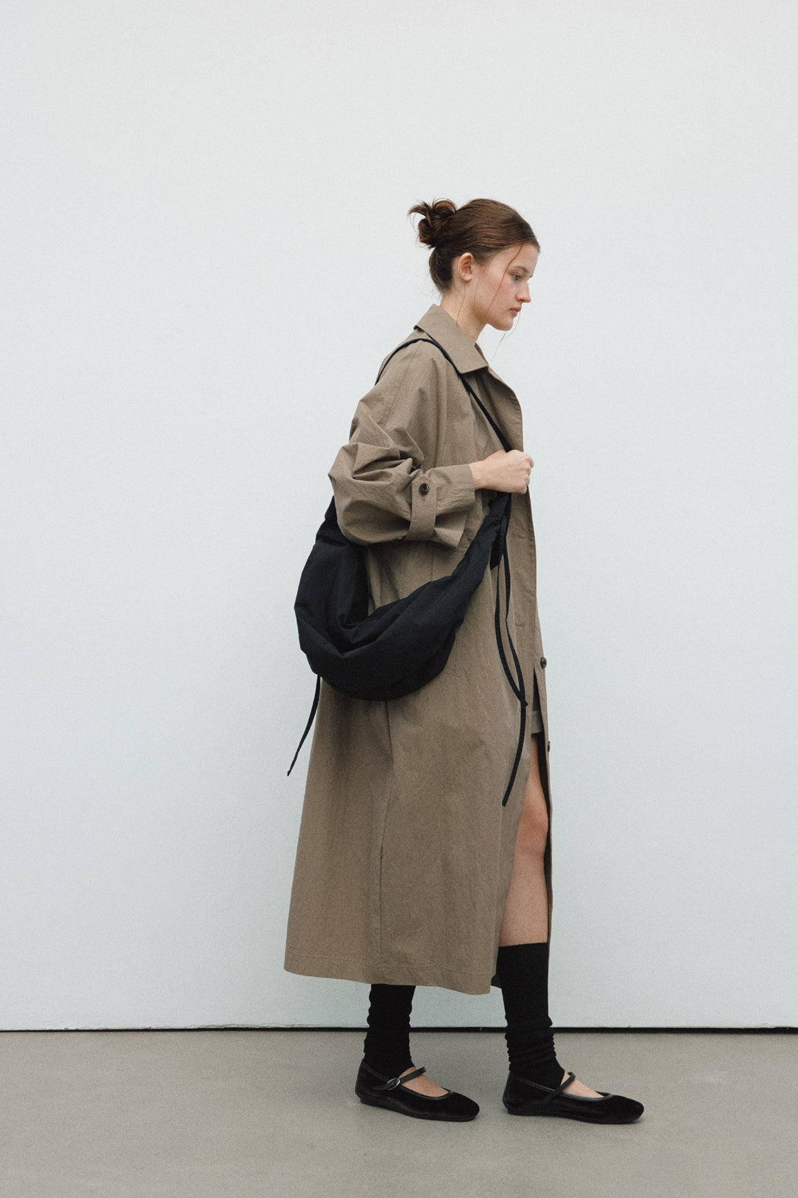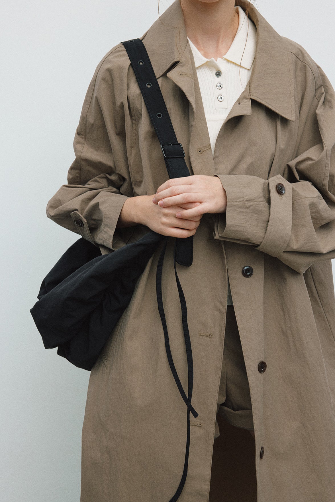 Cotton blend paper-like texture cocoon silhouette trench coat