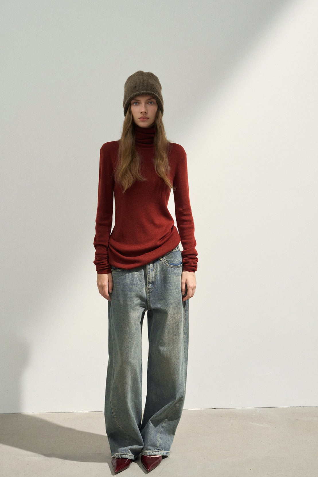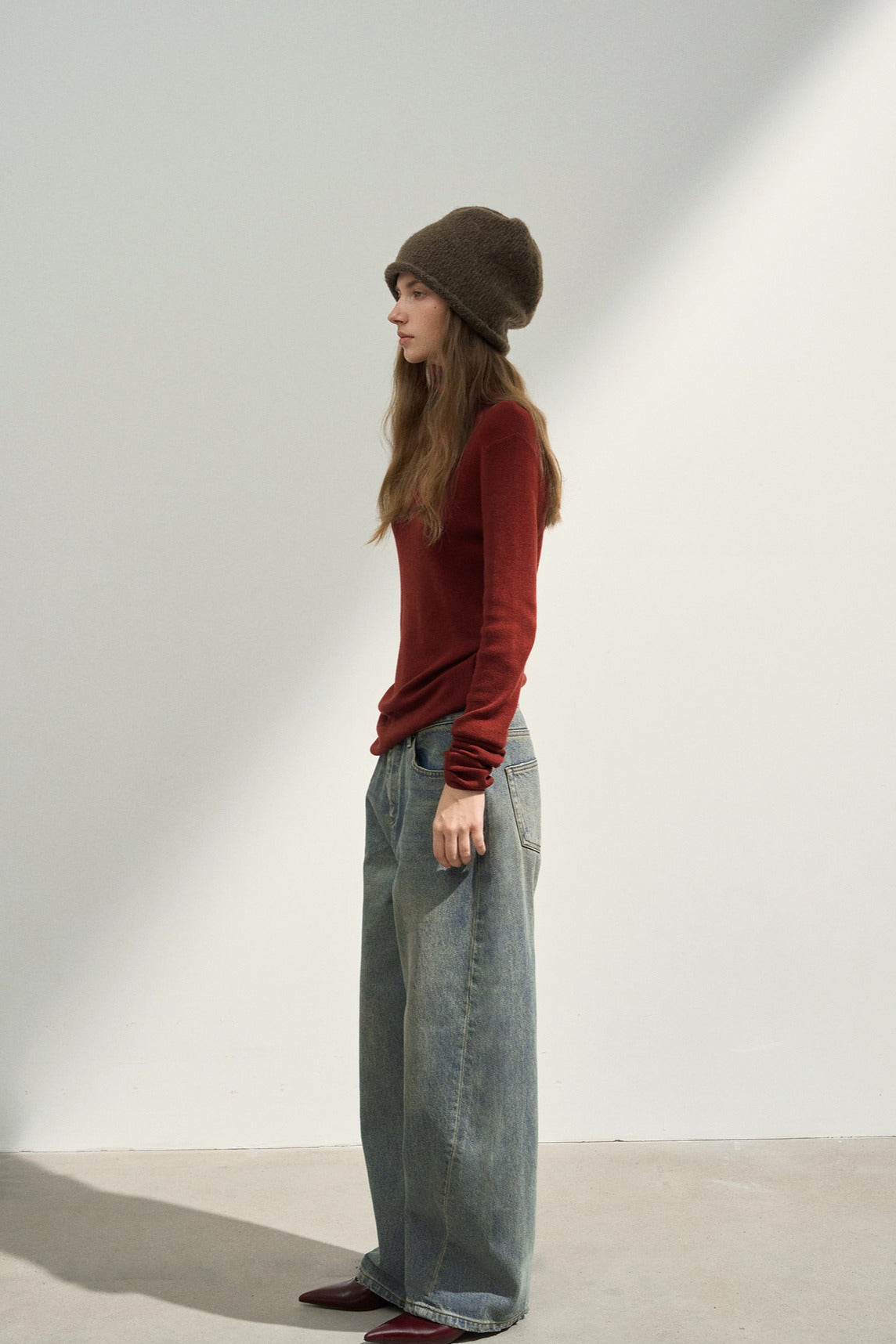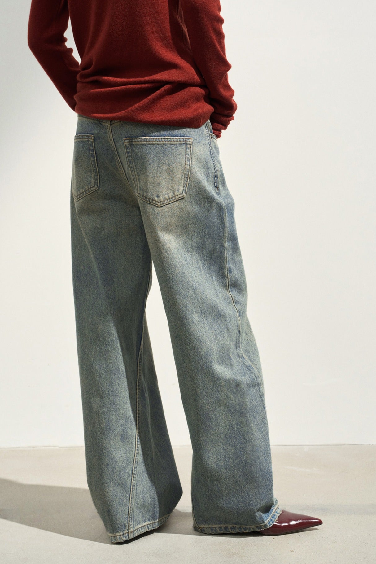 Cotton blend retro-style curved shape jeans