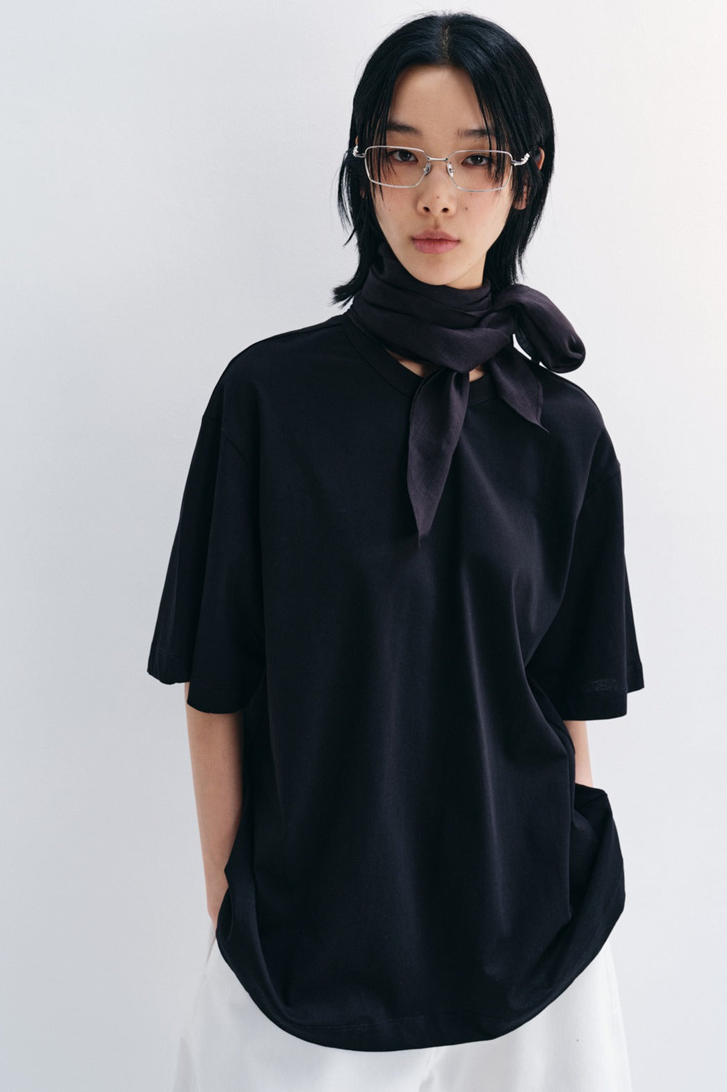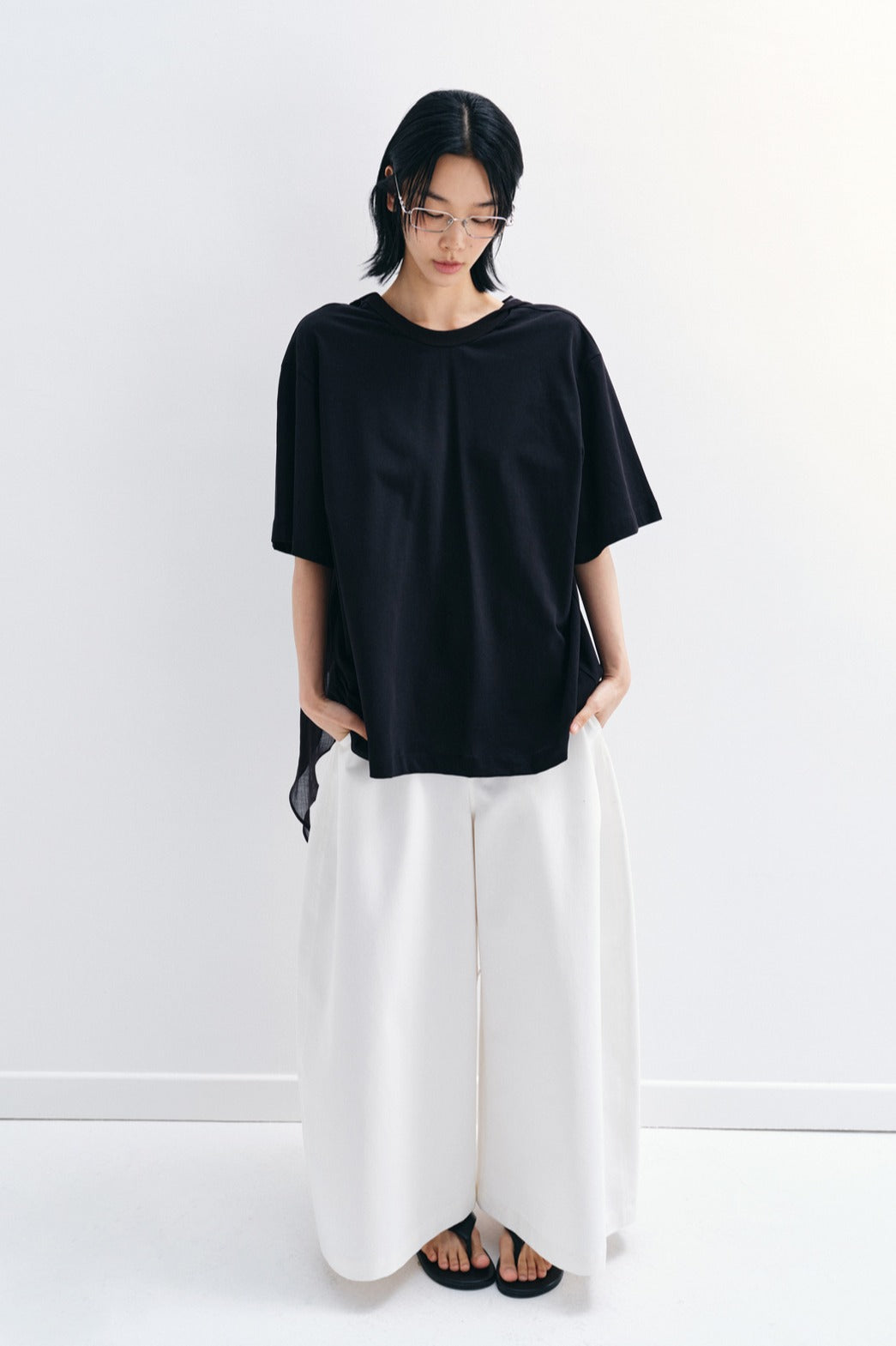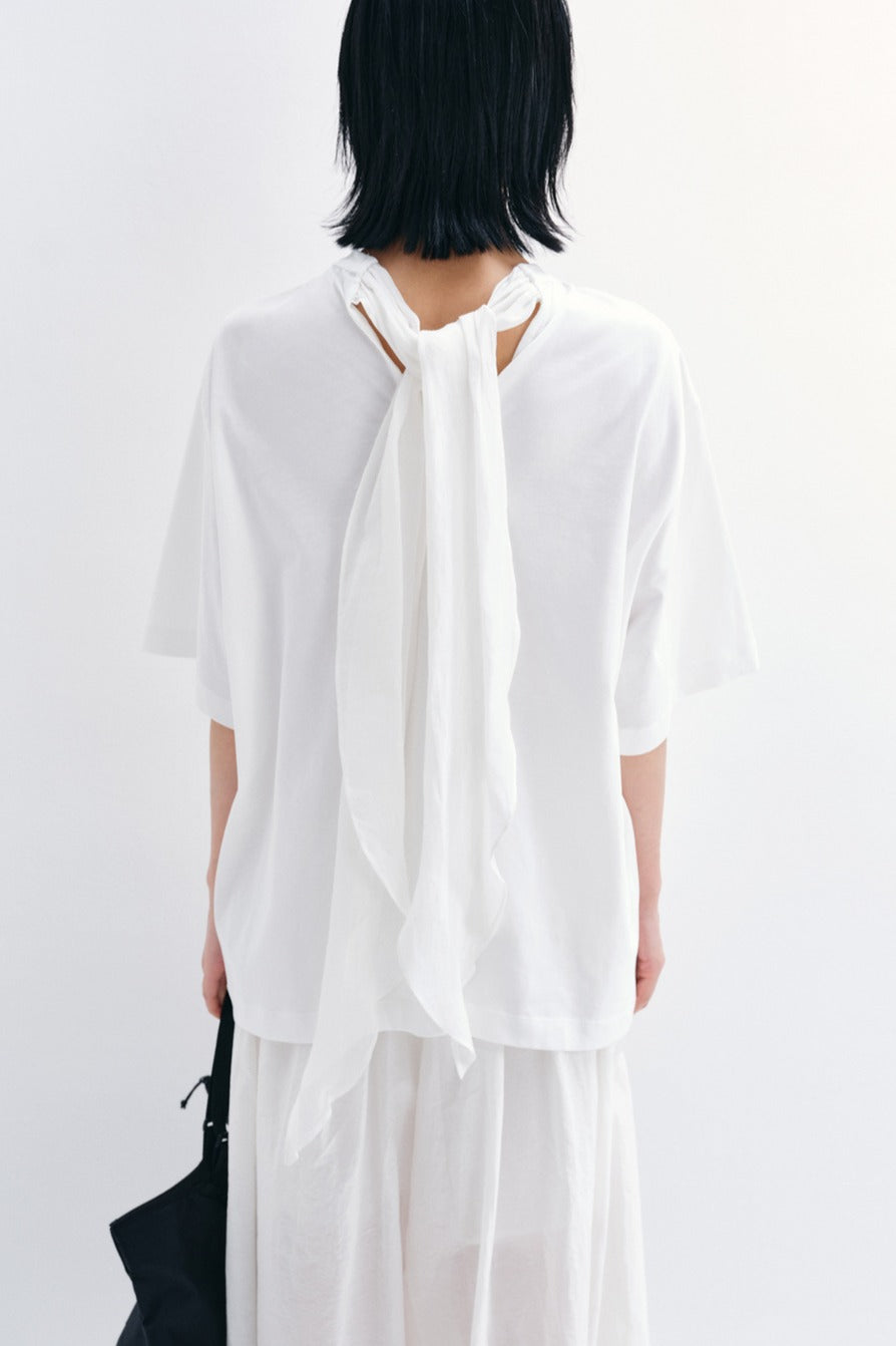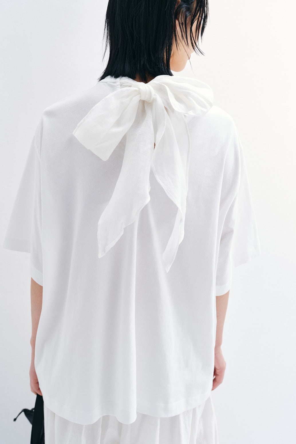 Cotton loose-fit T-shirt with a ramie ribbon | 3 color