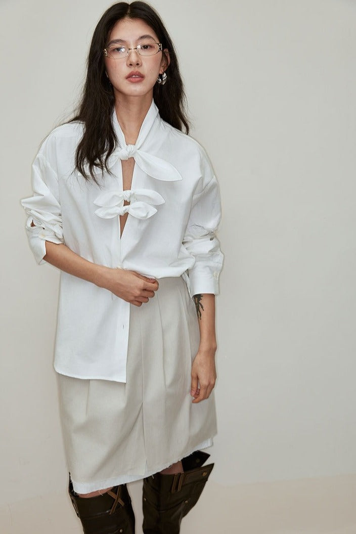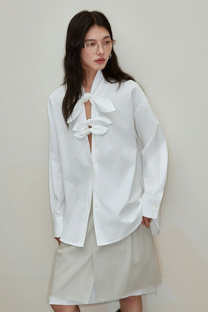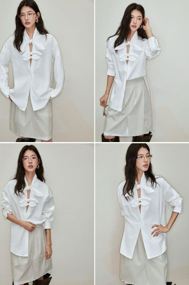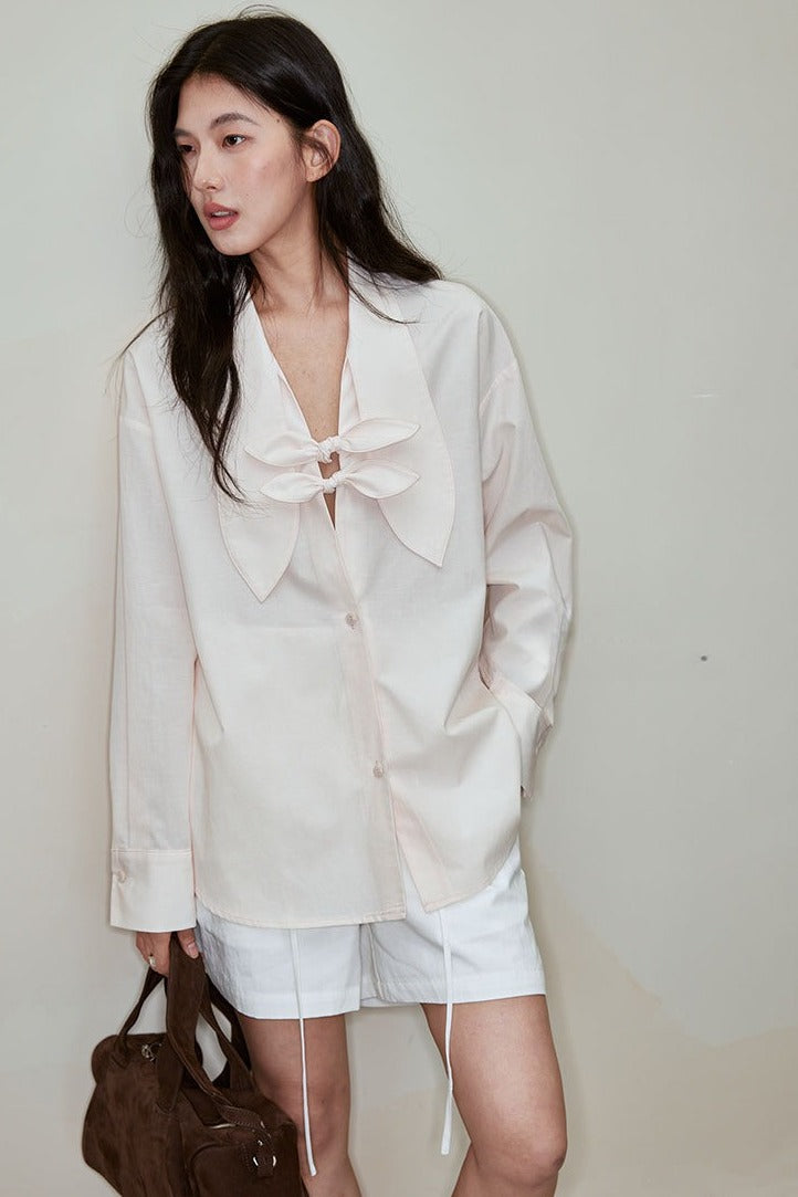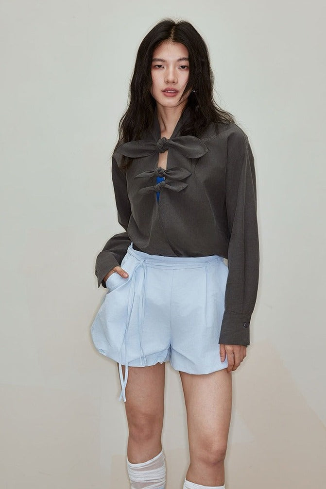 Lyocell-cotton butterfly knot blouse | 3 color