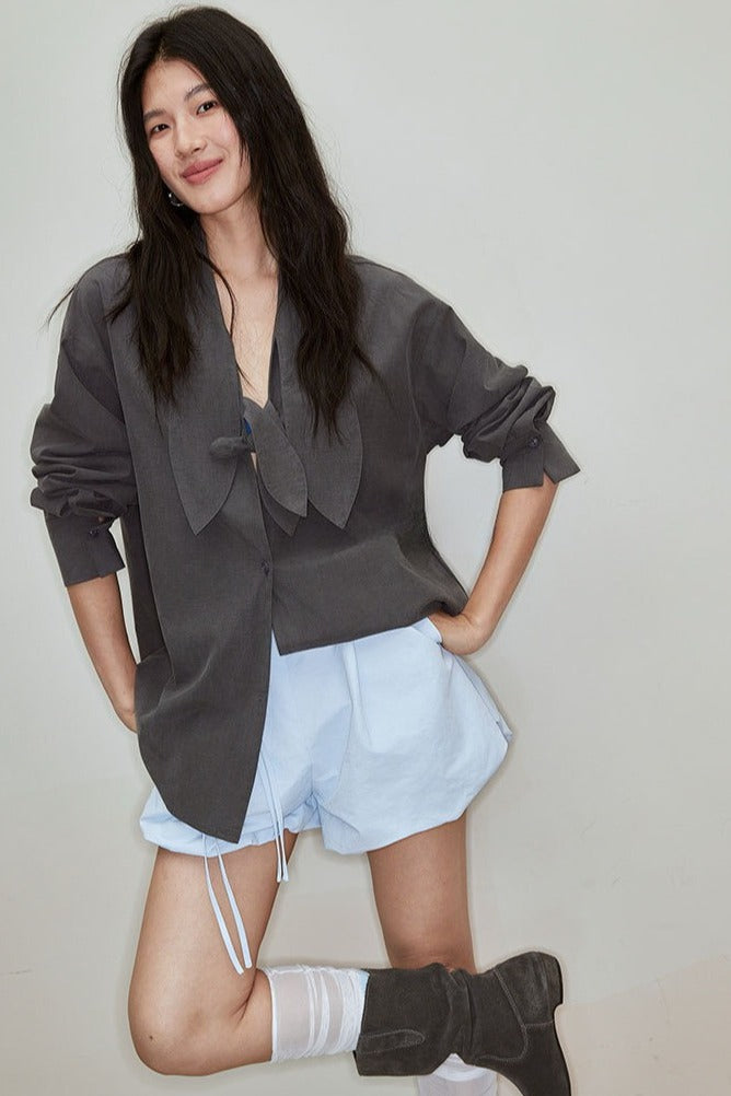 Lyocell-cotton butterfly knot blouse | 3 color -