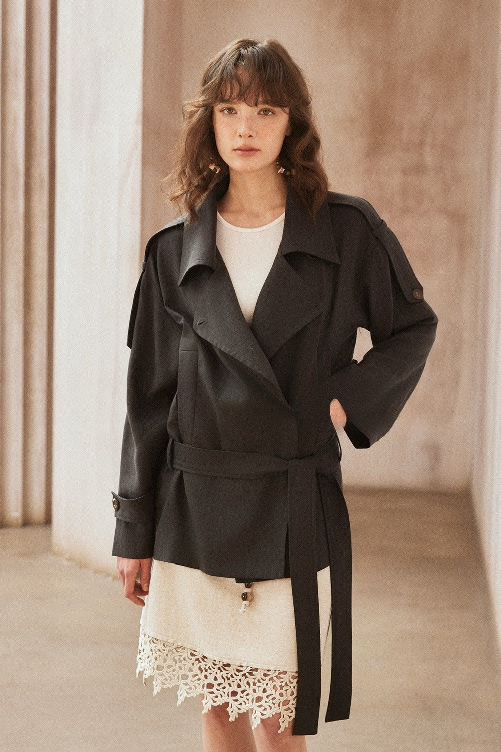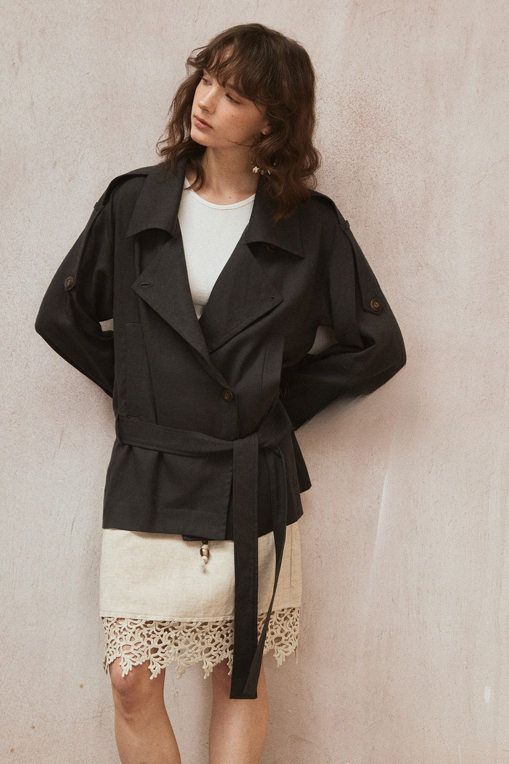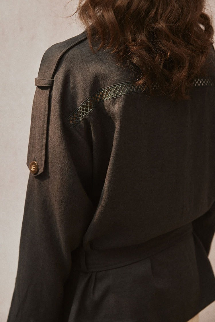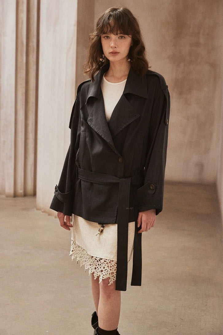 Lyocell-linen soft-touch short trench jacket | 2 color