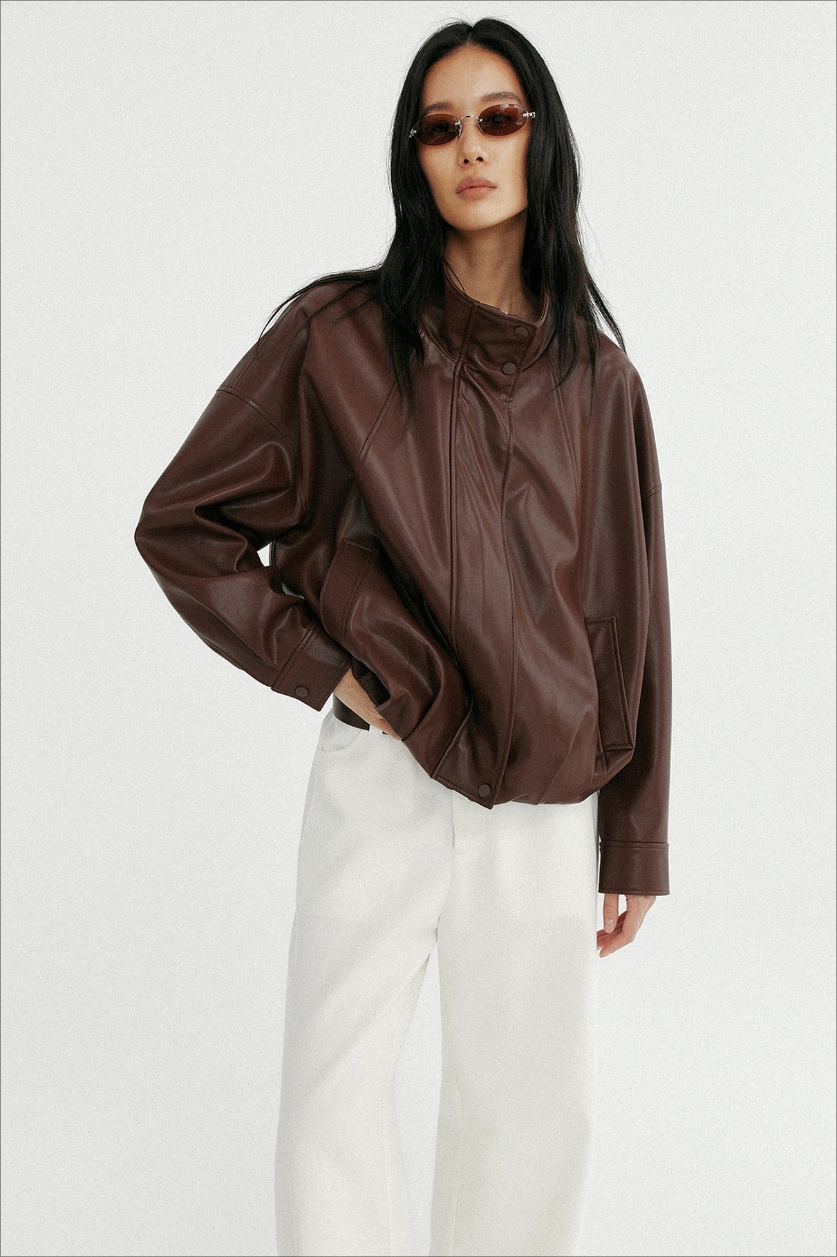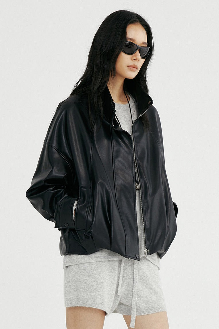 Cotton blend paper-like texture cocoon silhouette trench coat