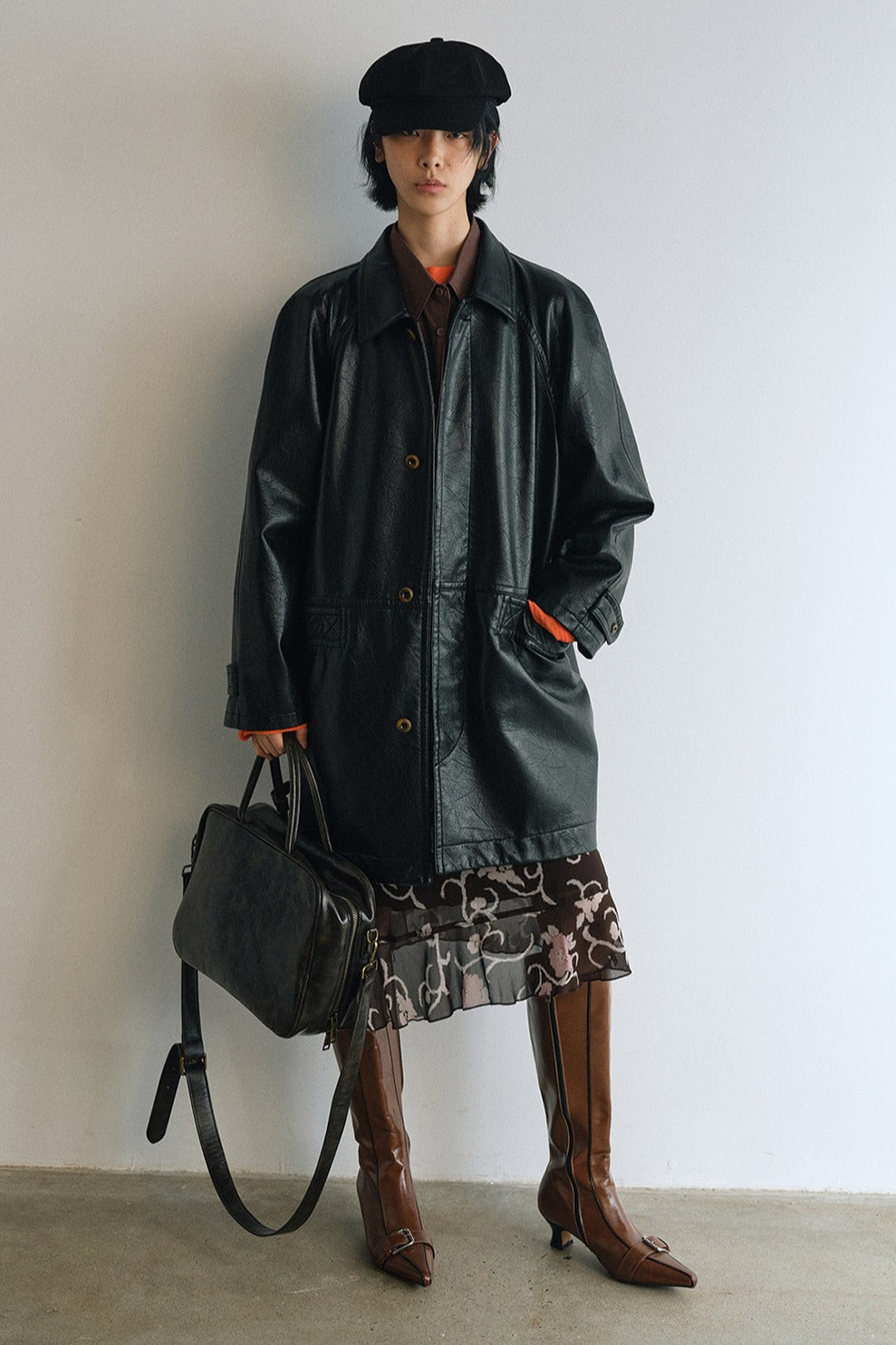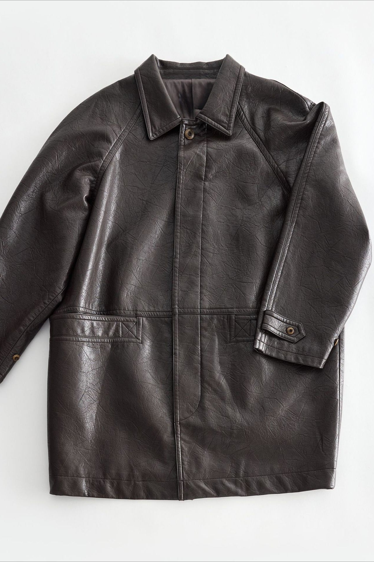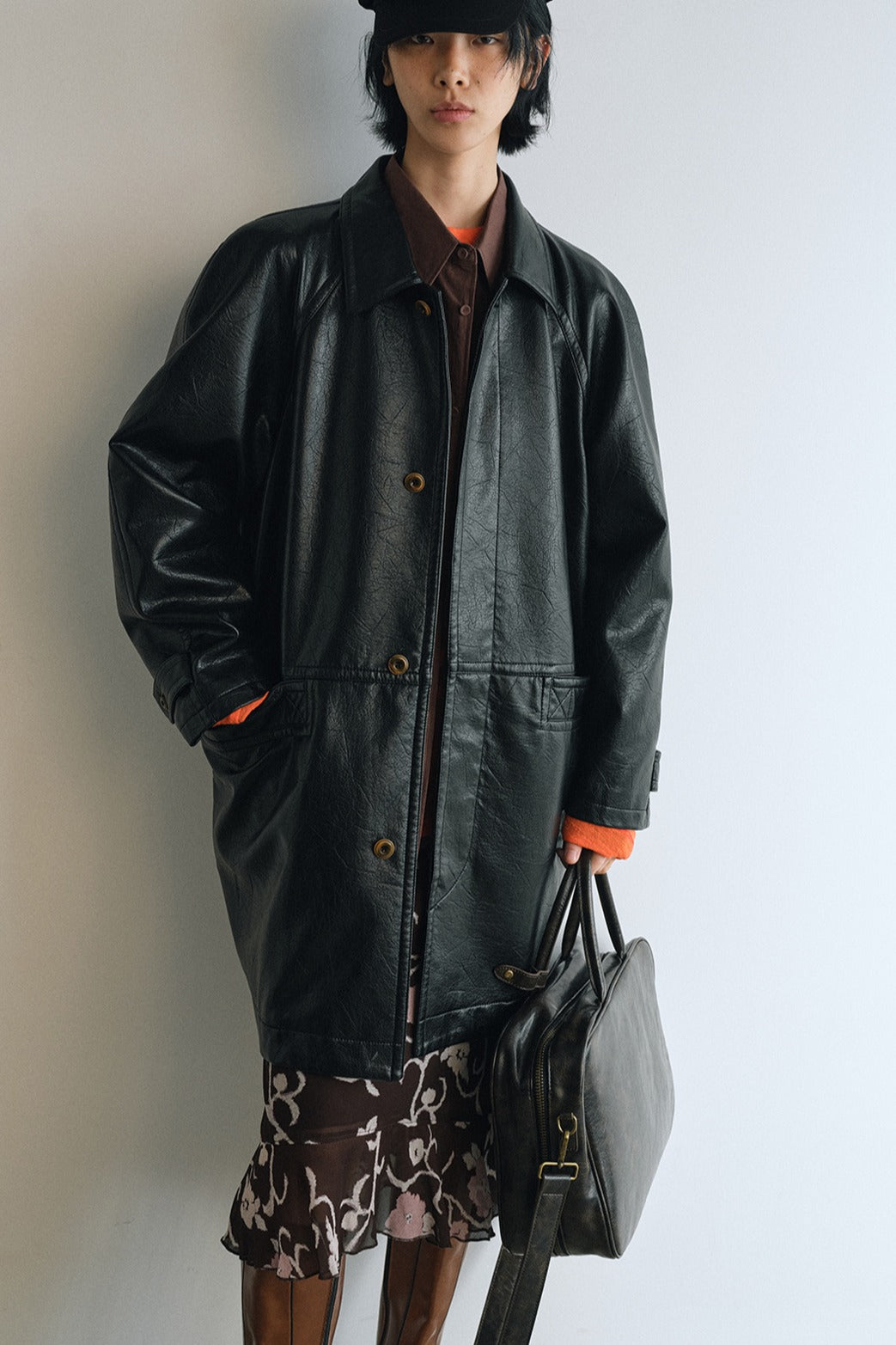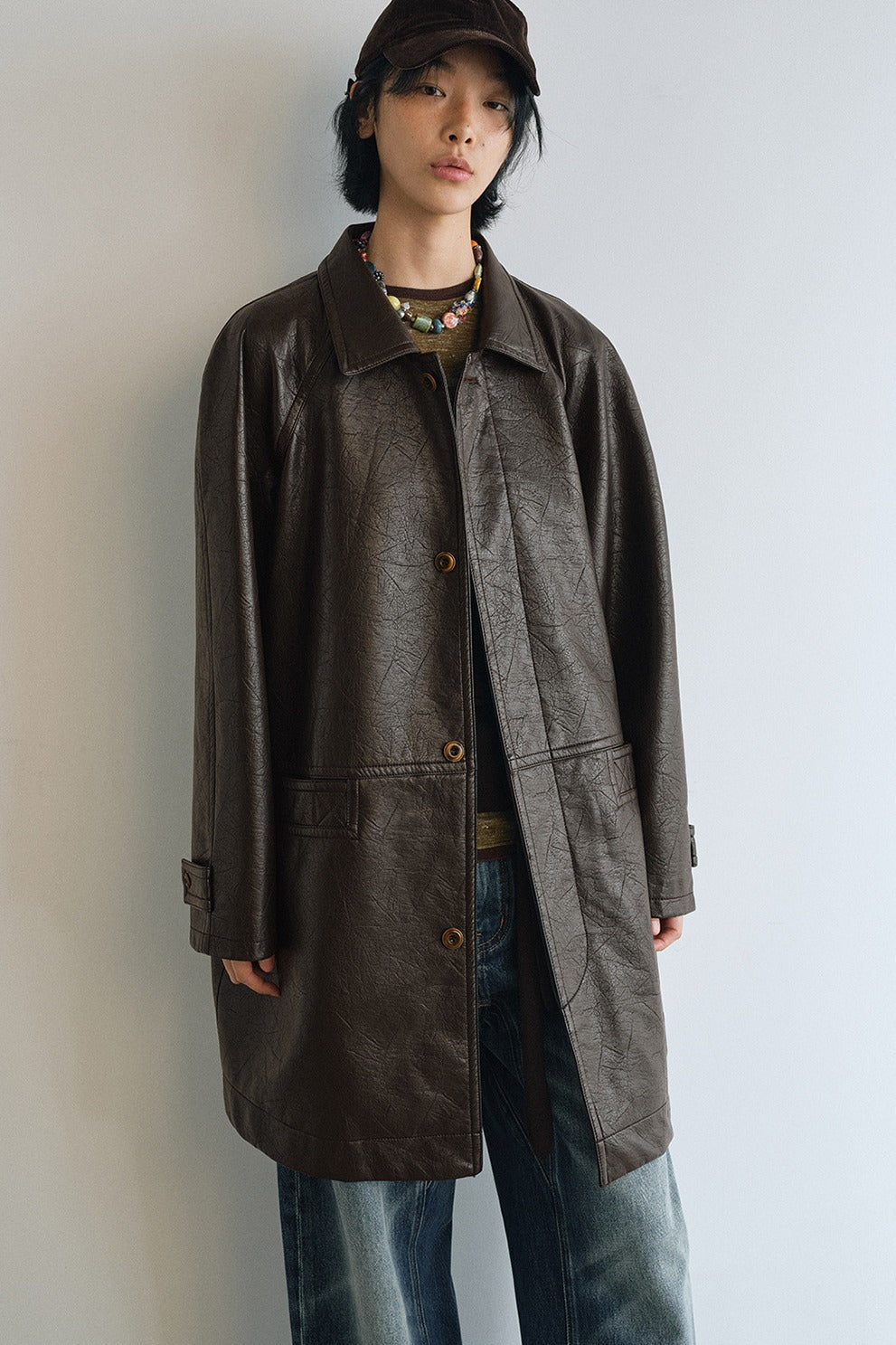 Cotton blend paper-like texture cocoon silhouette trench coat