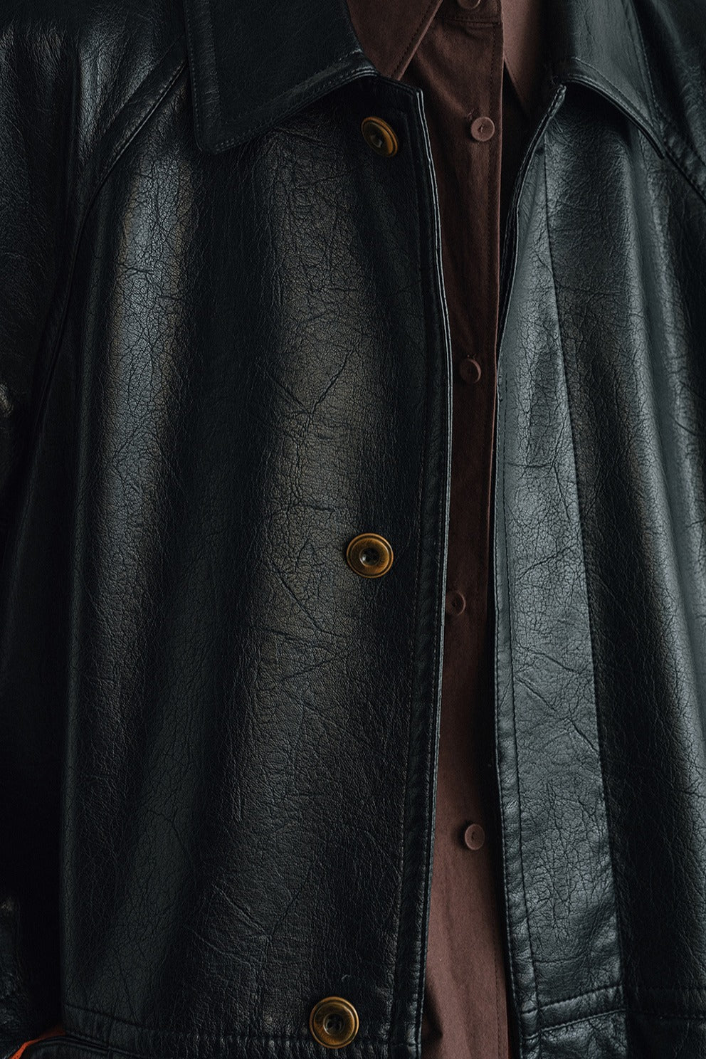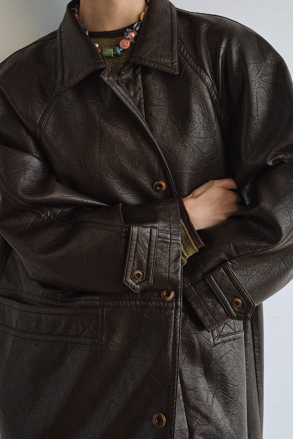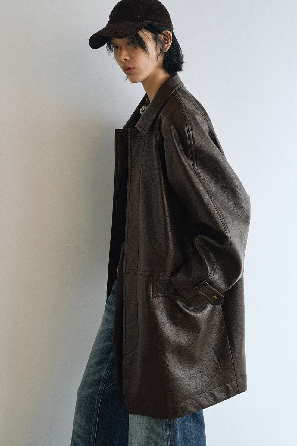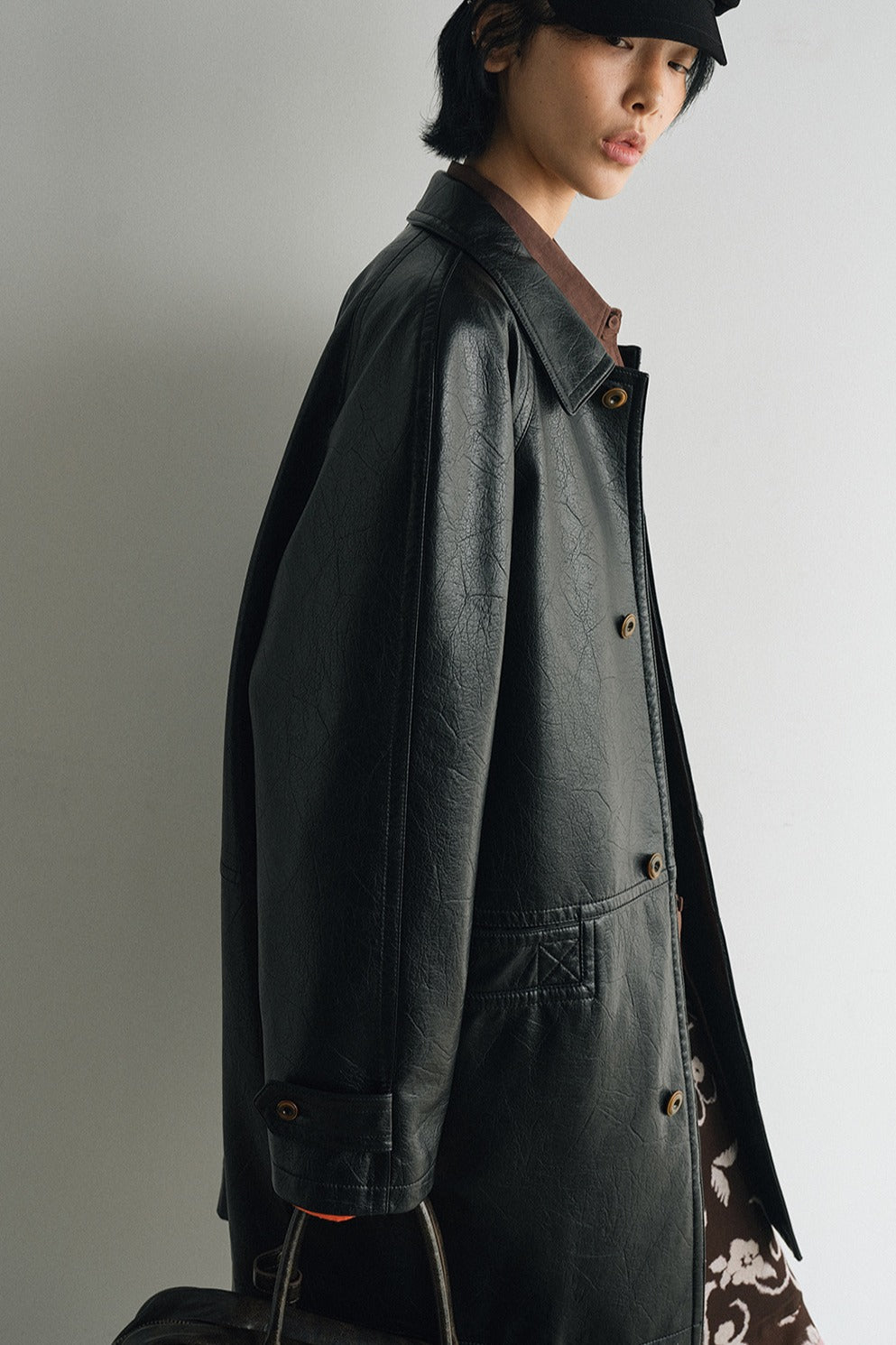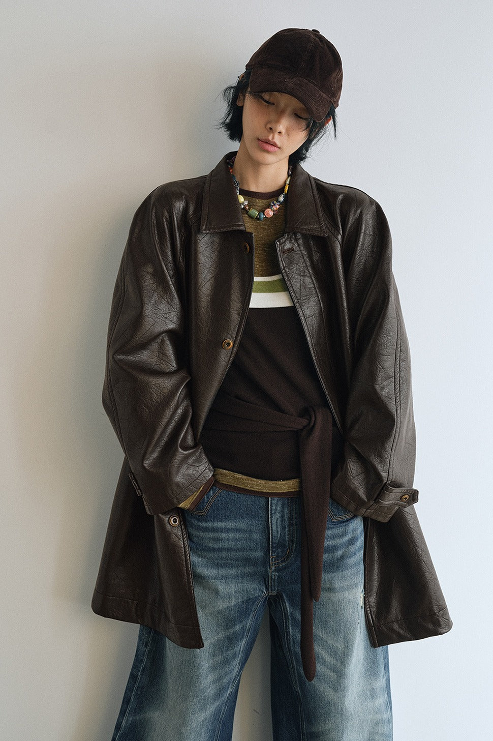 Cotton blend paper-like texture cocoon silhouette trench coat