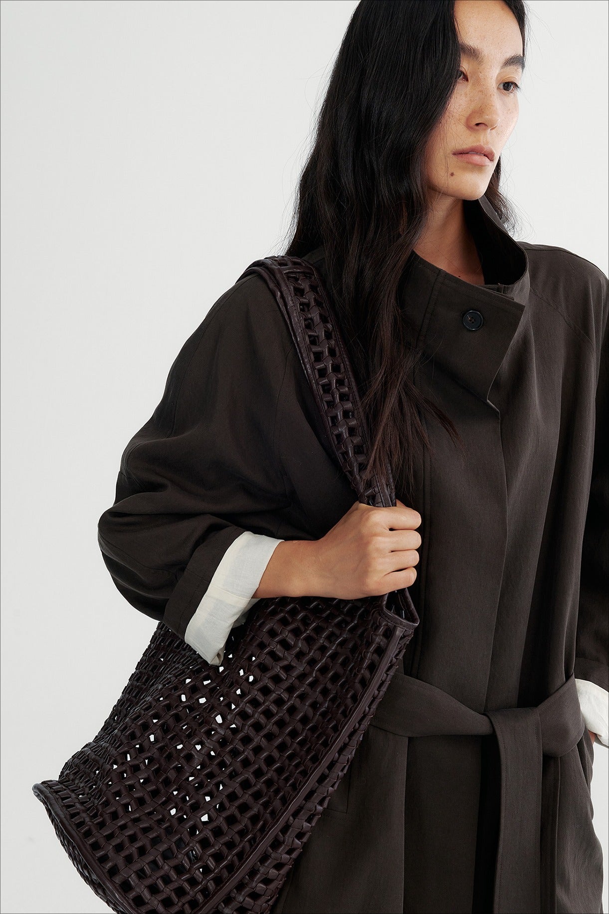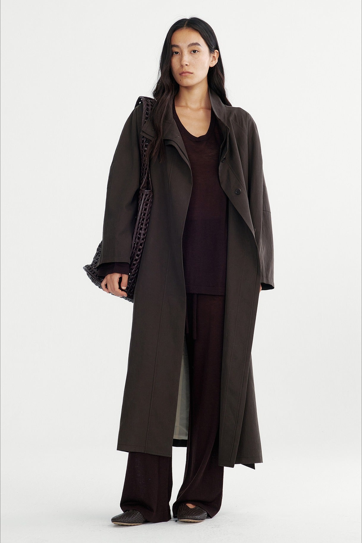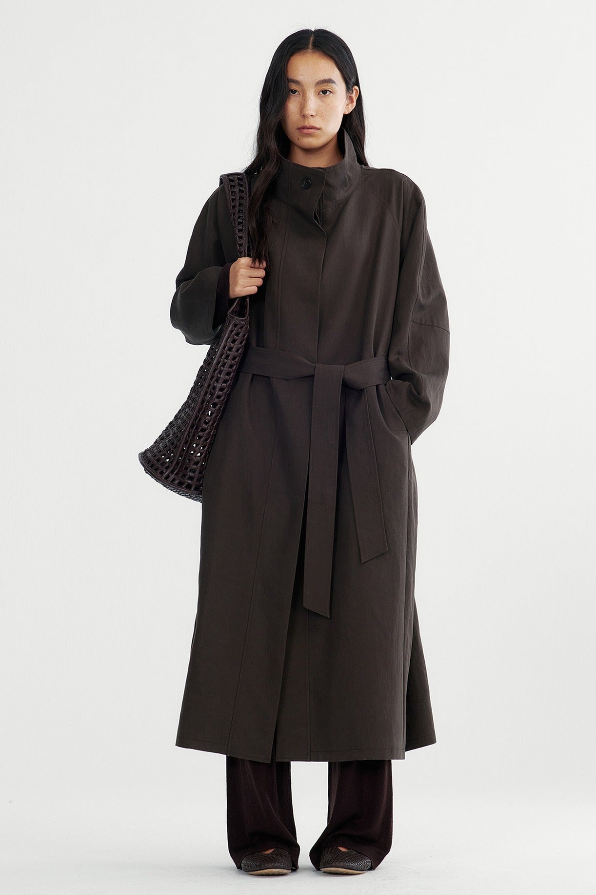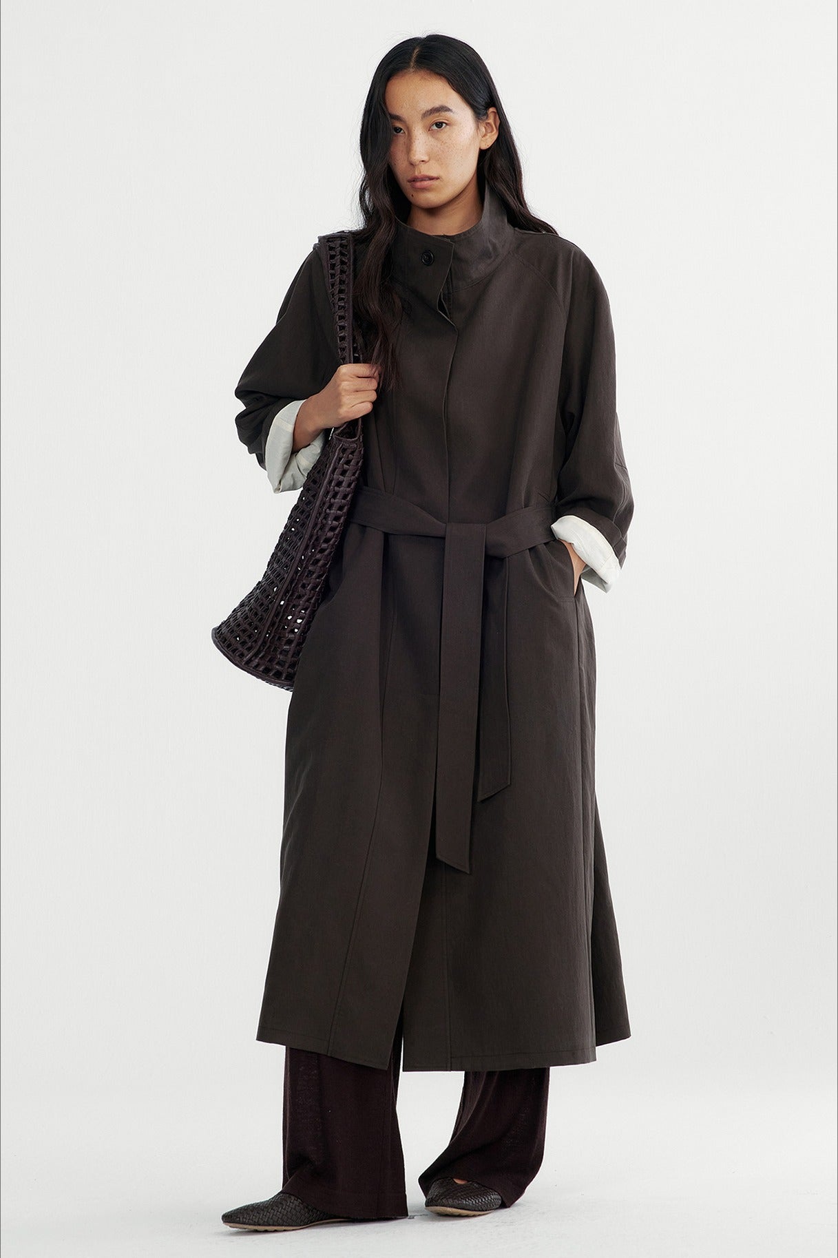 Cotton blend paper-like texture cocoon silhouette trench coat