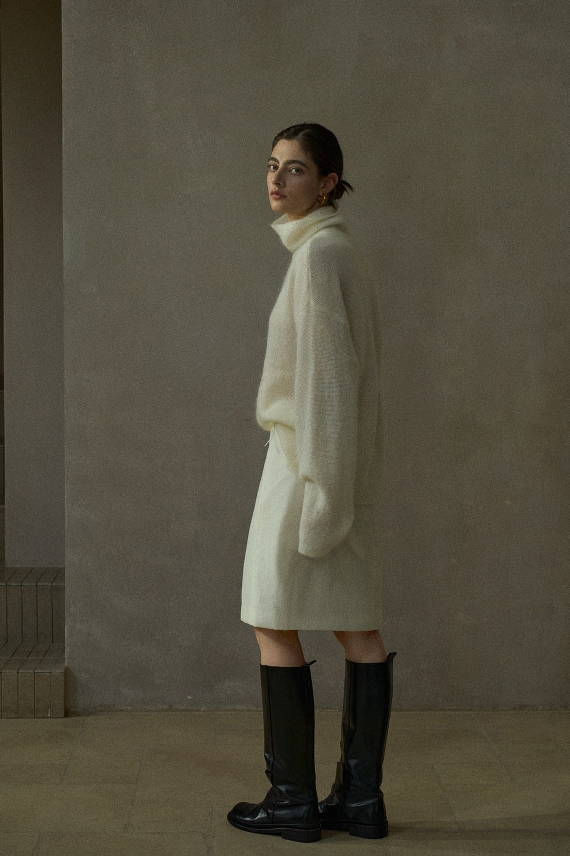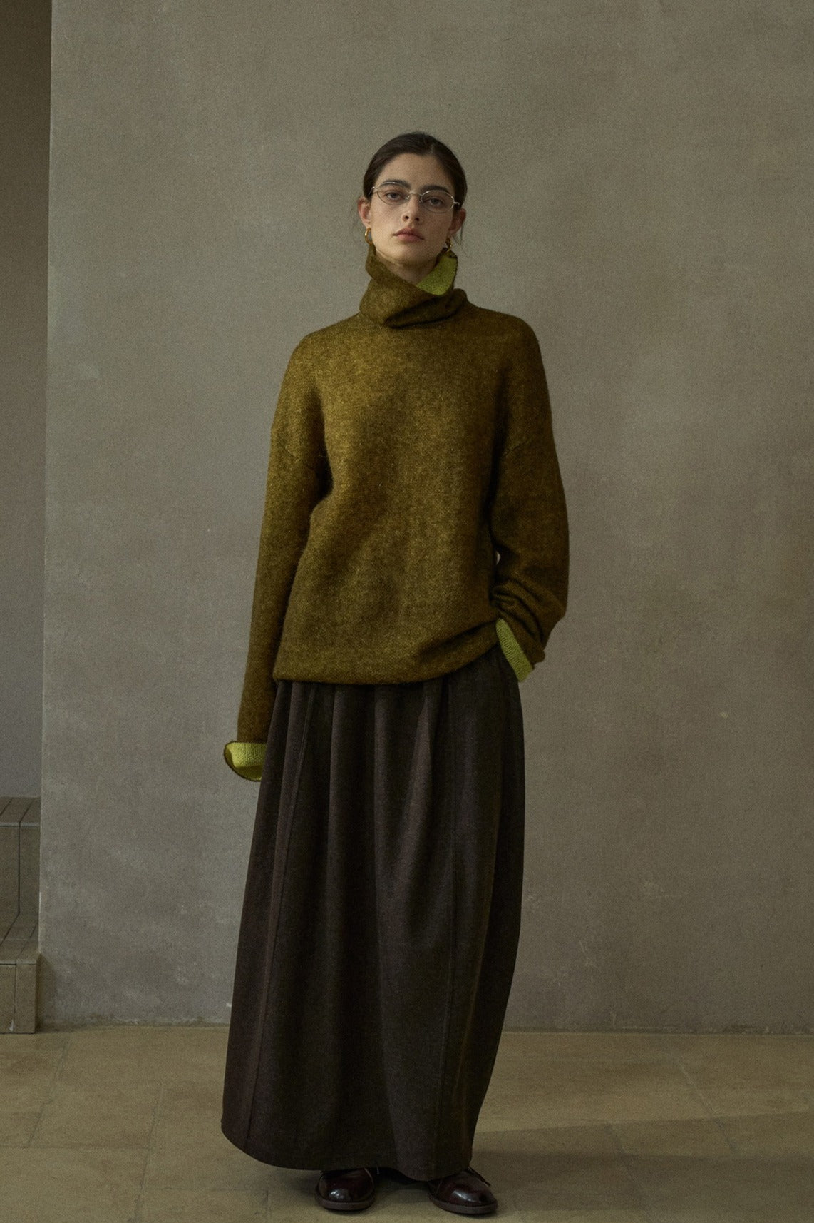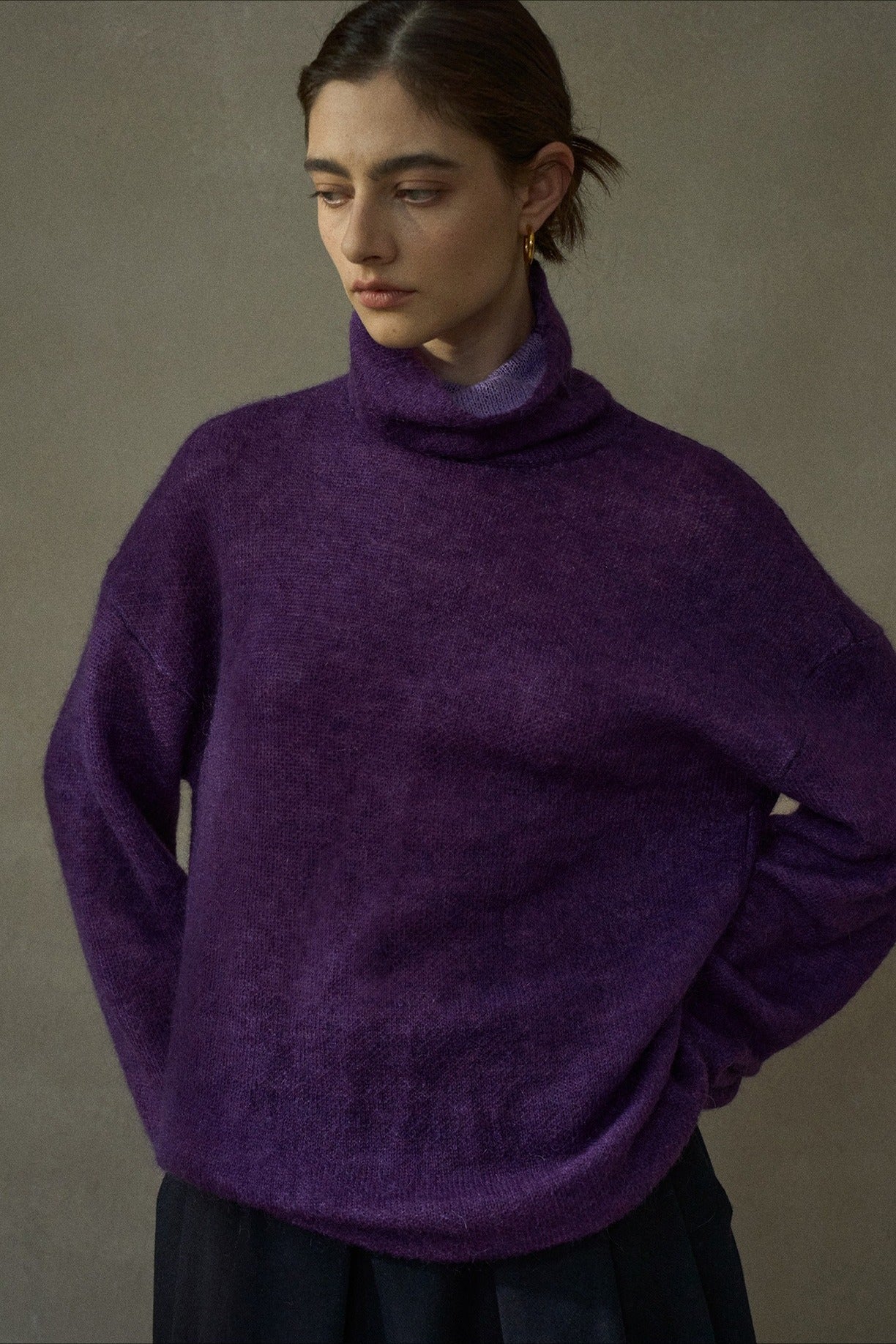 Mohair blend stacked high neck cozy loose sweater | 4 color