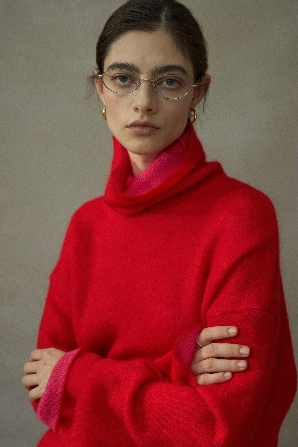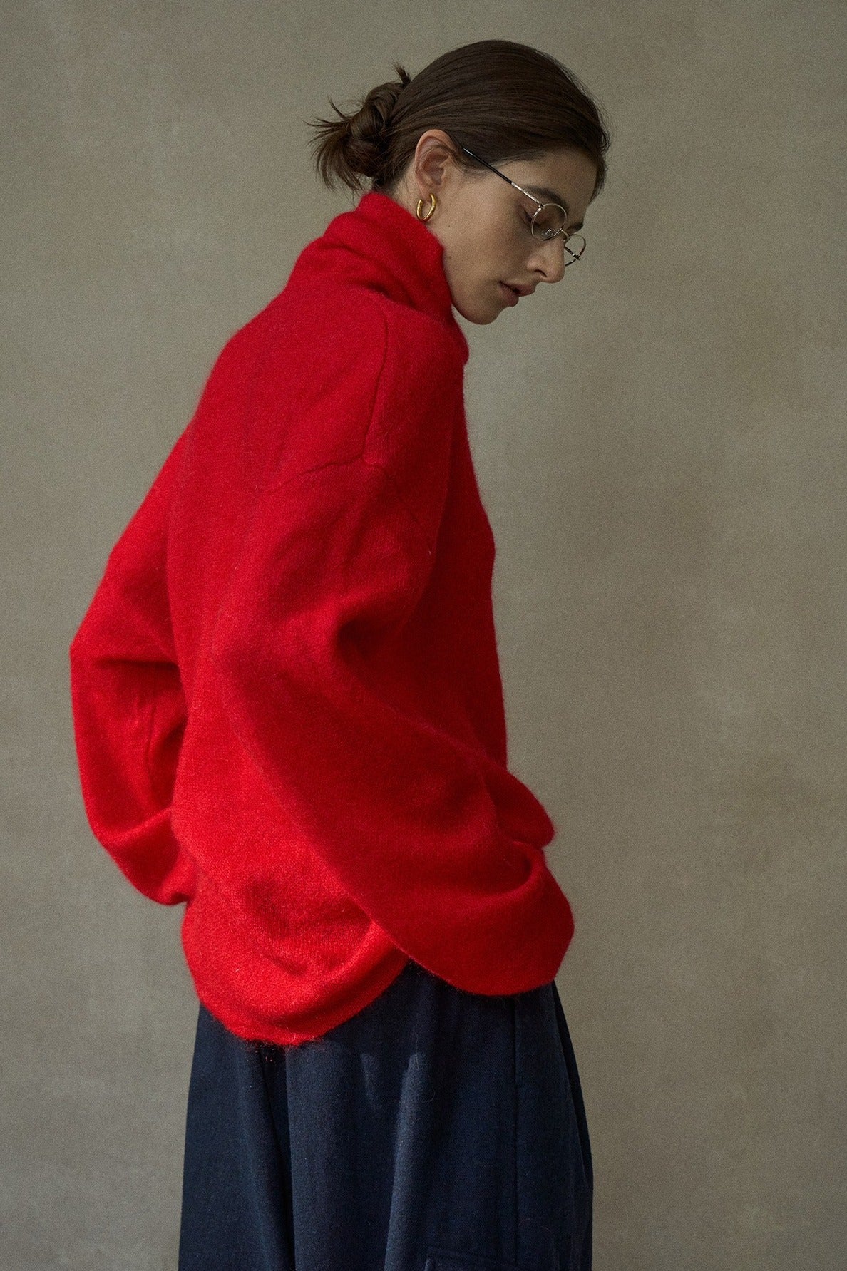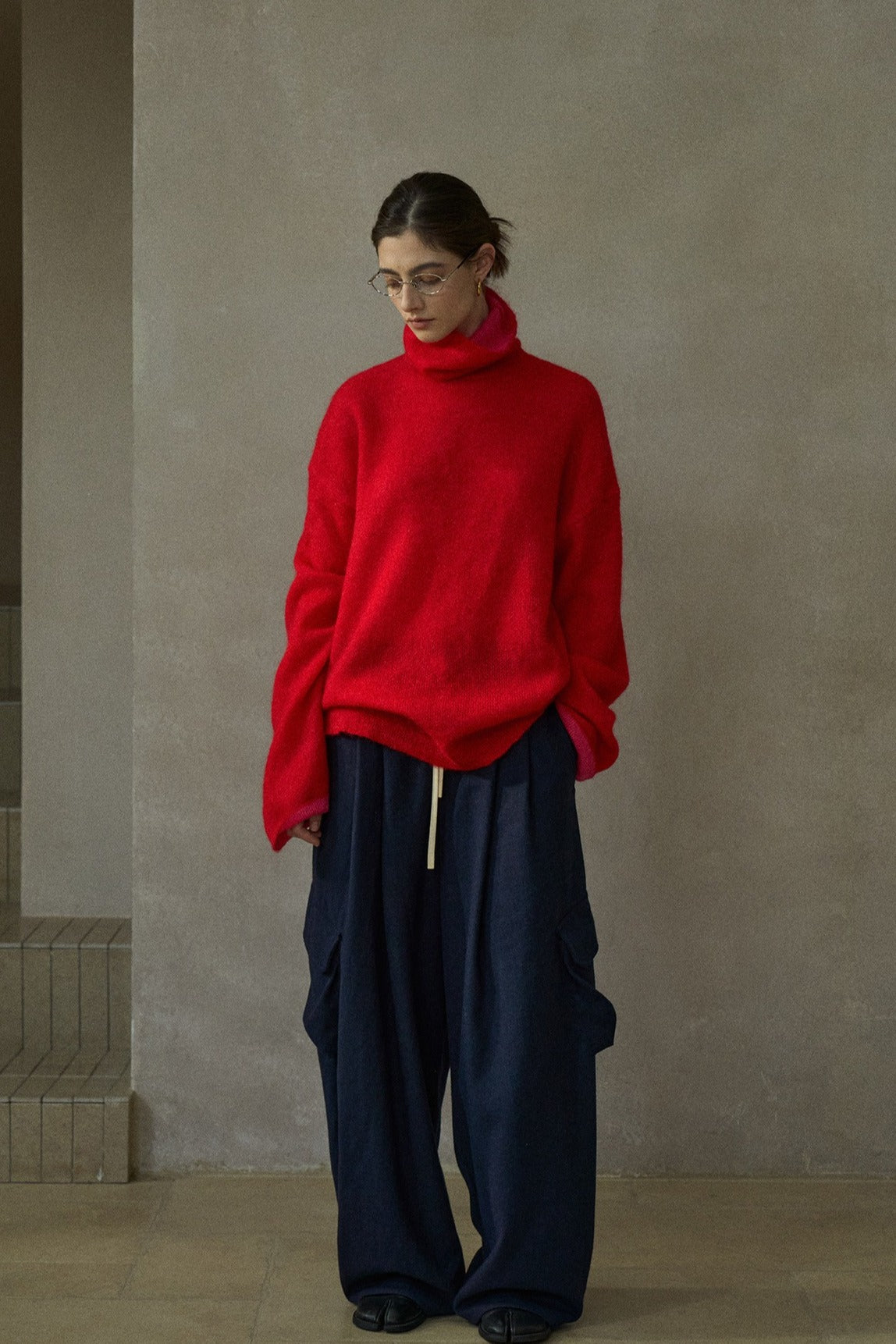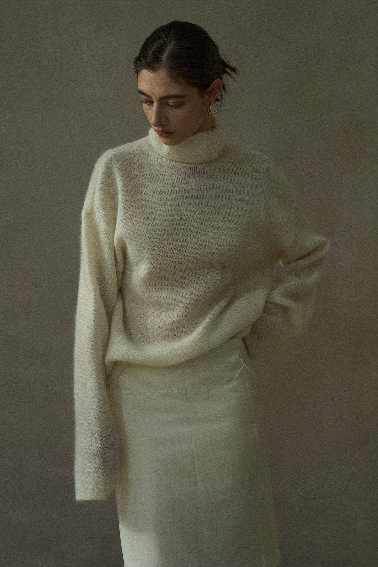 Mohair blend stacked high neck cozy loose sweater | 4 color