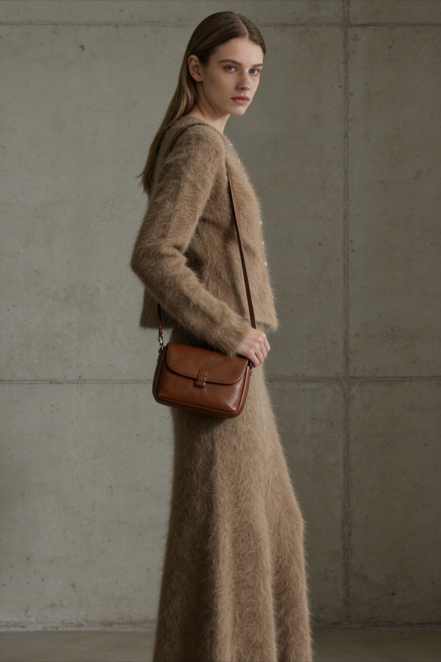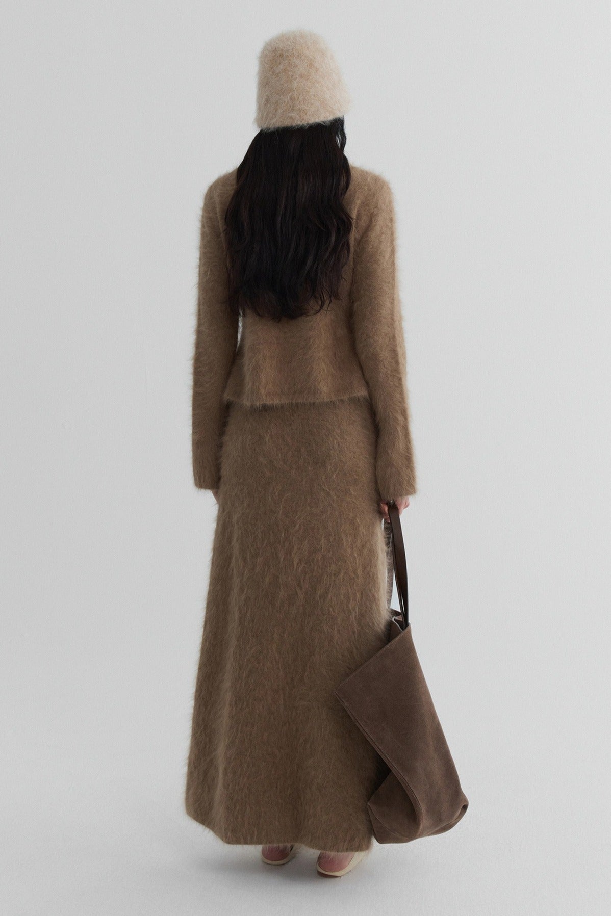 Otter-fleece blend waisted plush cardigan+skirt | bubble tea