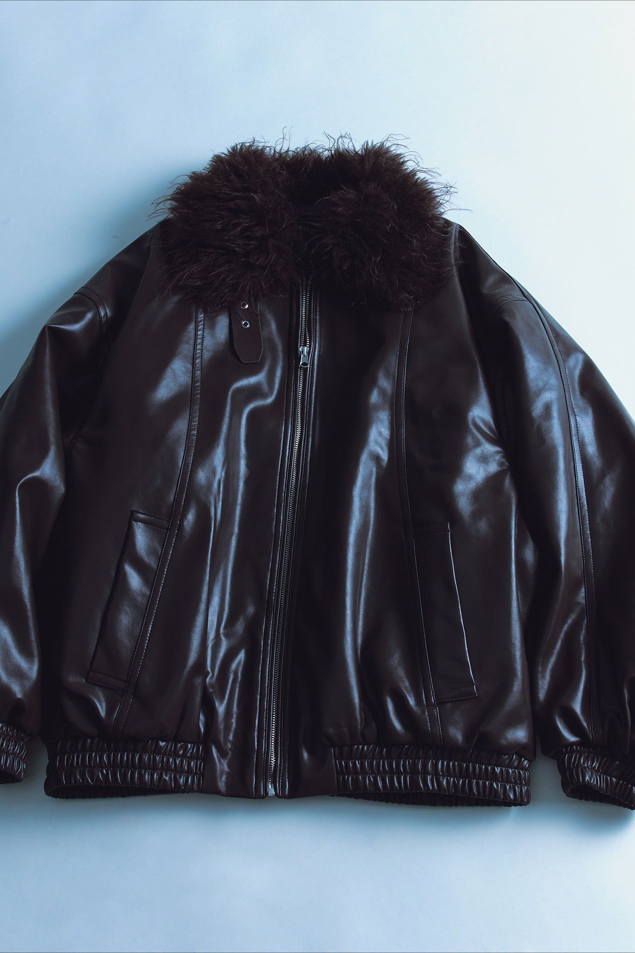Relaxed-fit cozy collar trendy PU jacket | 2 color