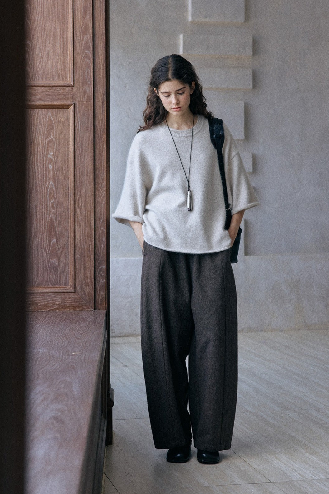 Cotton blend paper-like texture cocoon silhouette trench coat