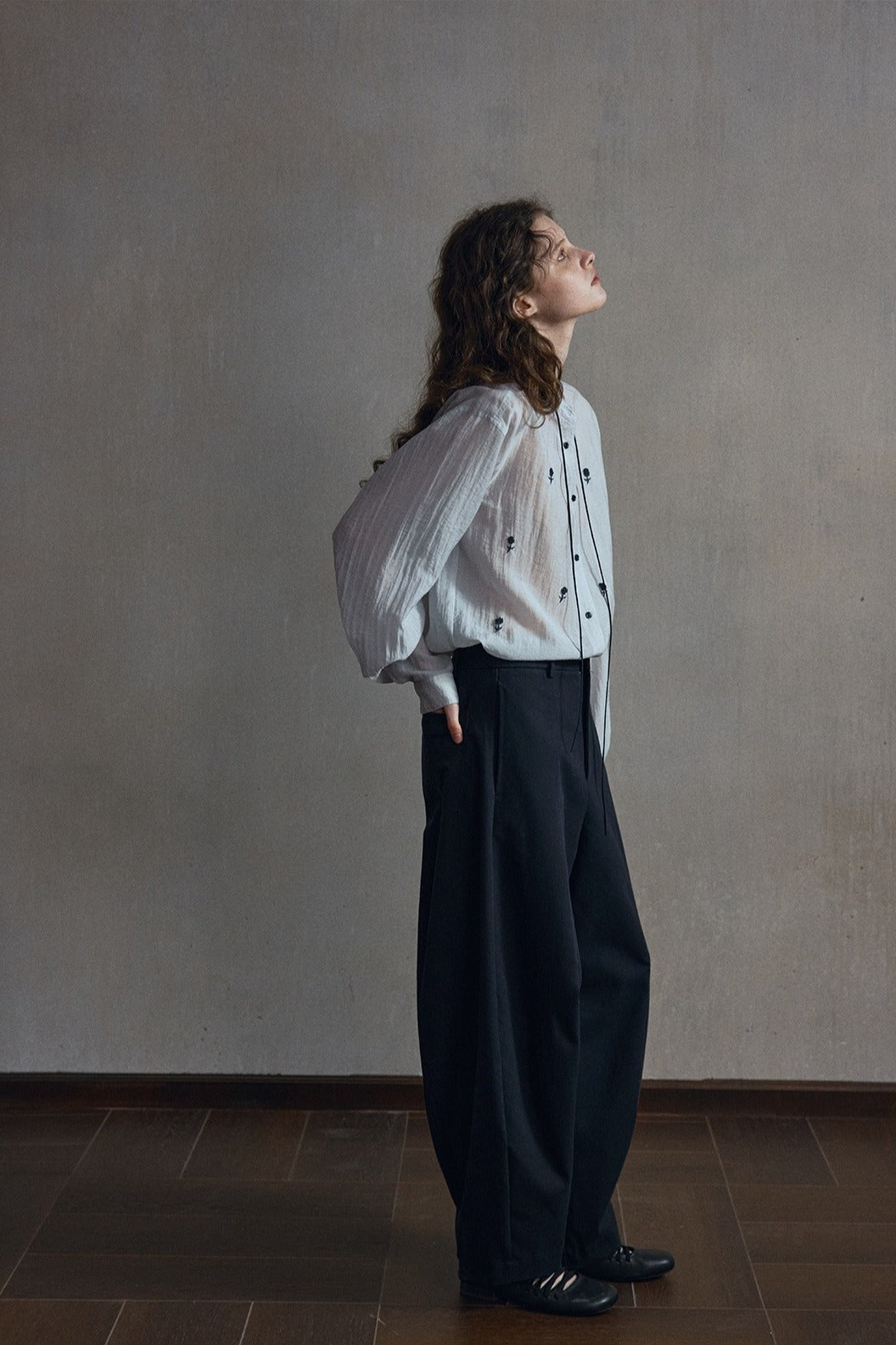 Cotton pleated curved pants | 4 color -