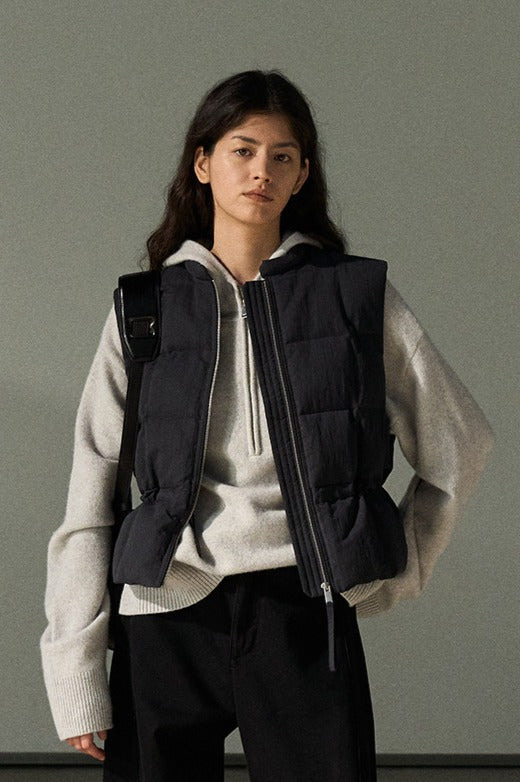 Content: Fill: 90% white duck down, 70grams; Outer fabric: 72.1% blend of polyster, polyamide, 27.9% nylon; Inner fabric: 100% polyster