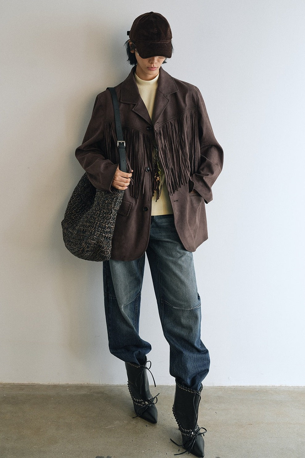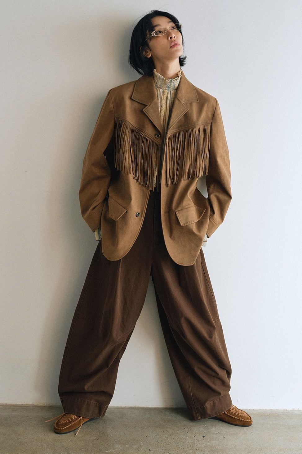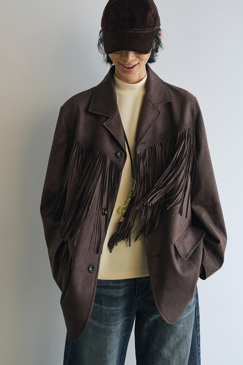 Suede texture fringe blazer | 2 color