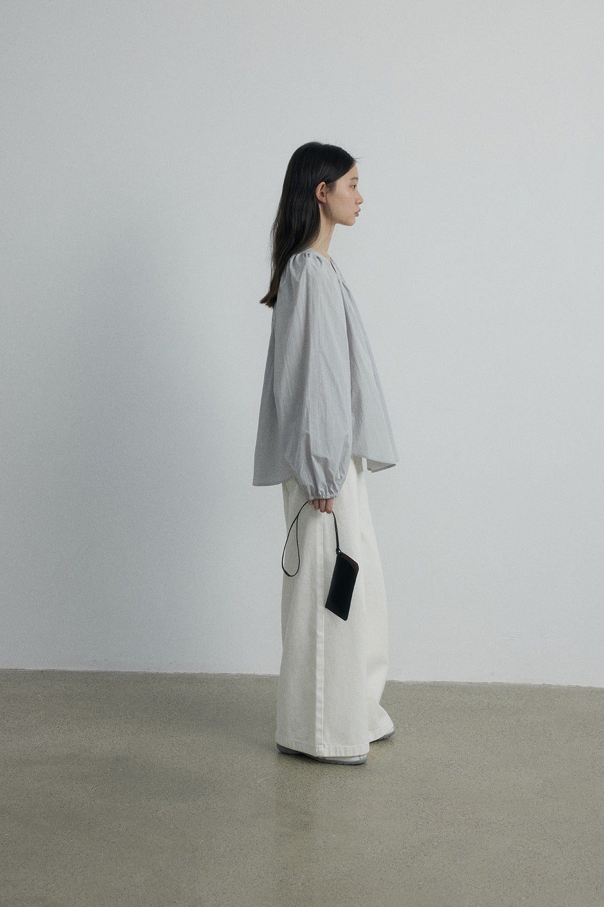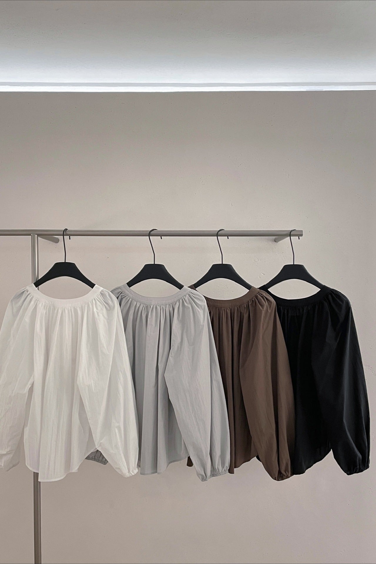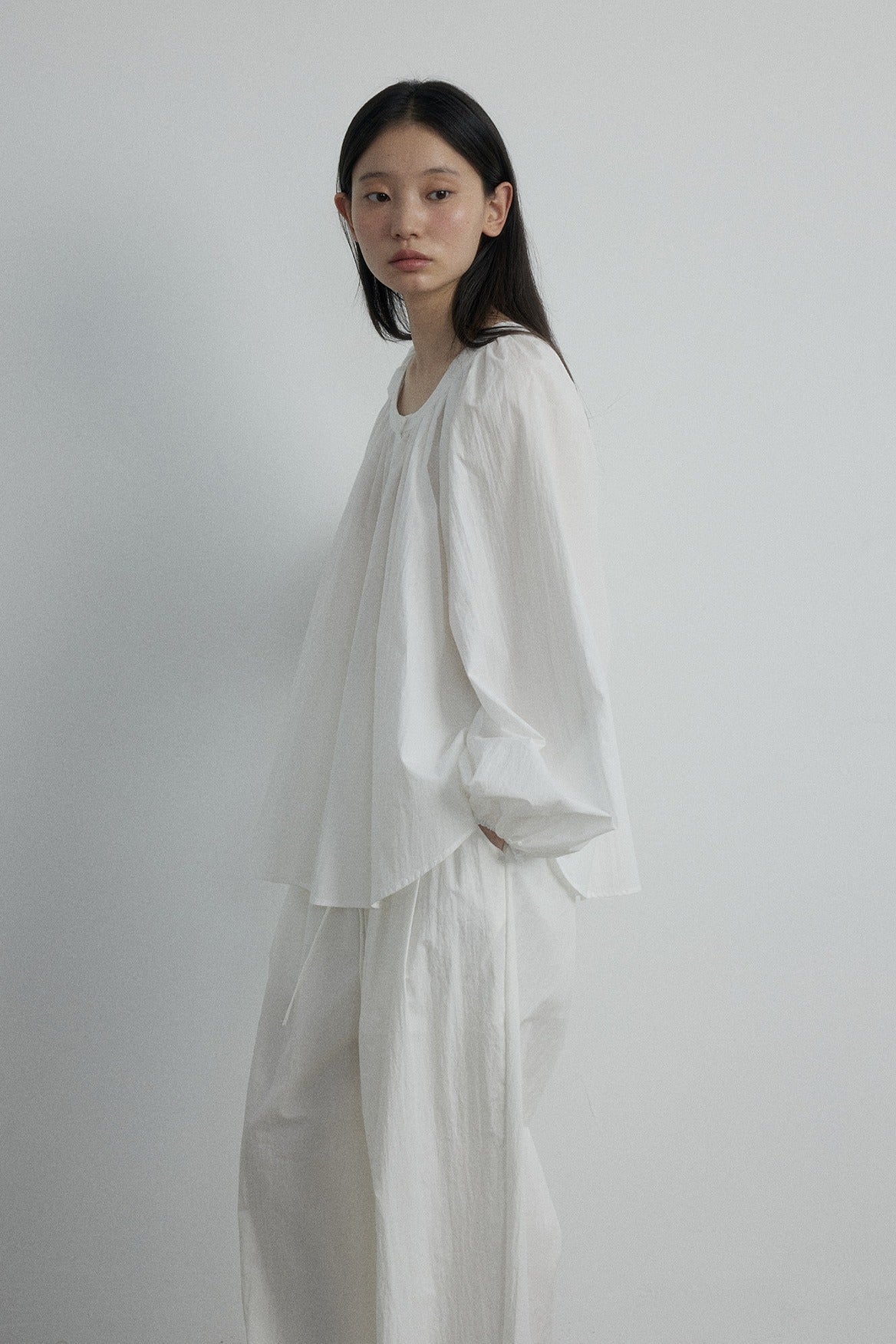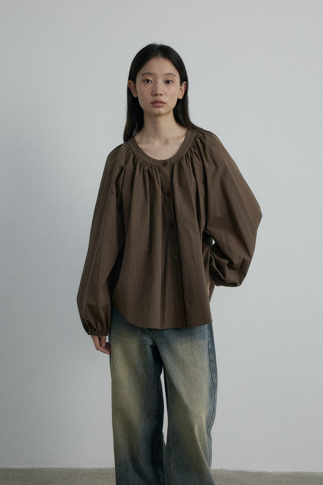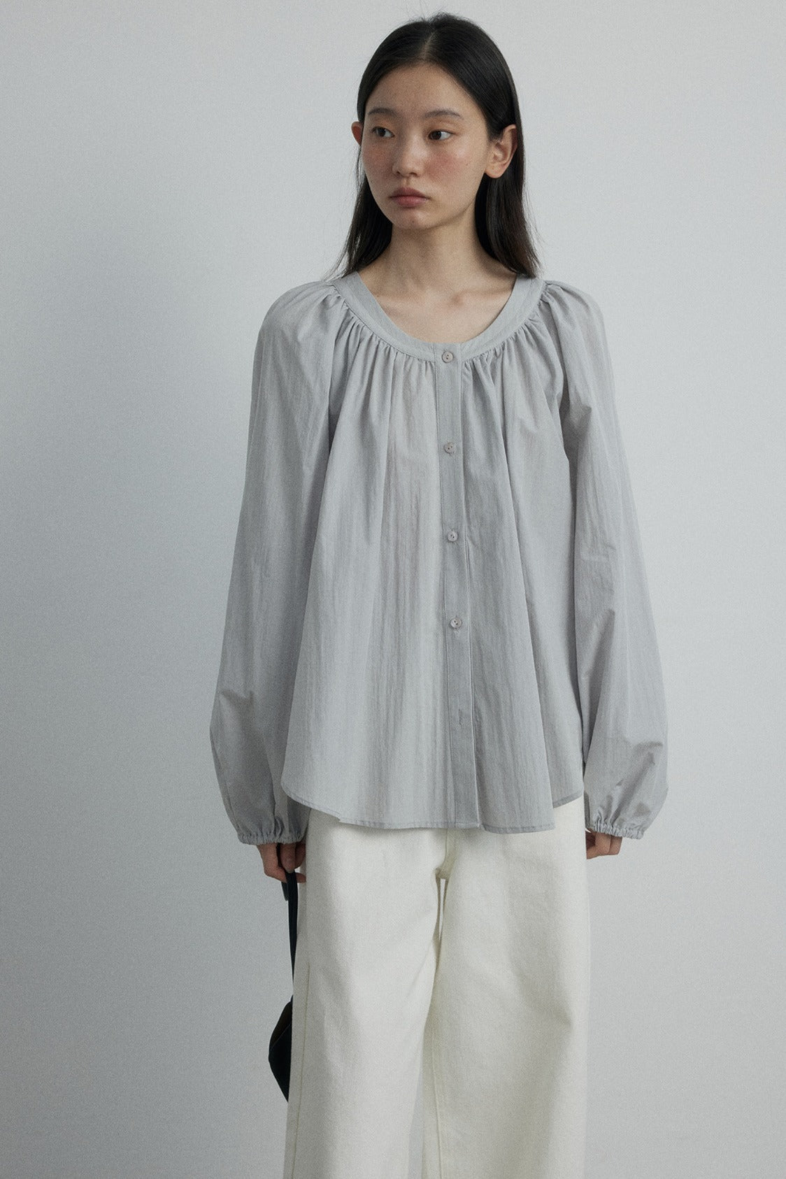 U-Neck Pleated Button-Down Long-Sleeve Shirt | 4 color