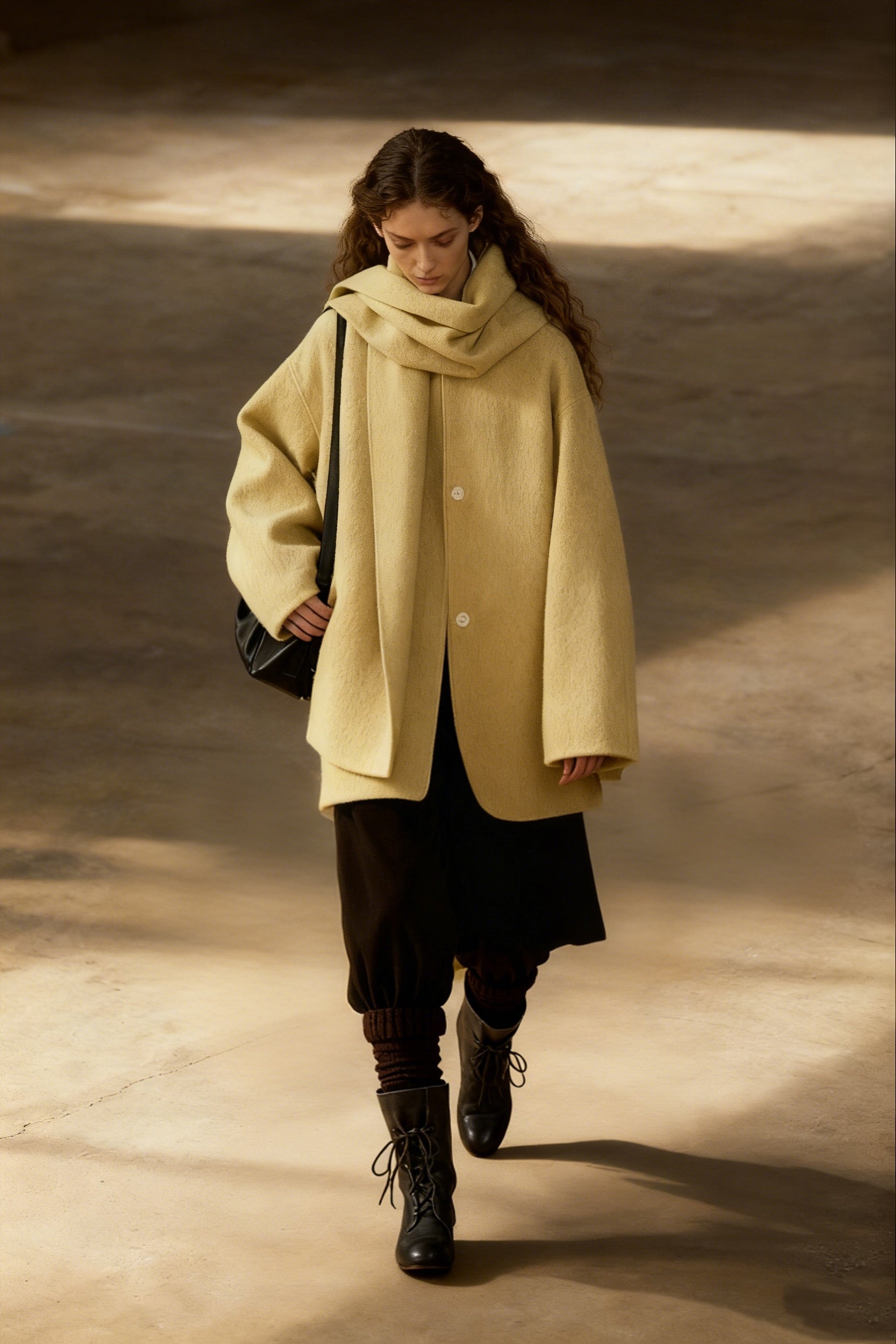 Cotton blend paper-like texture cocoon silhouette trench coat