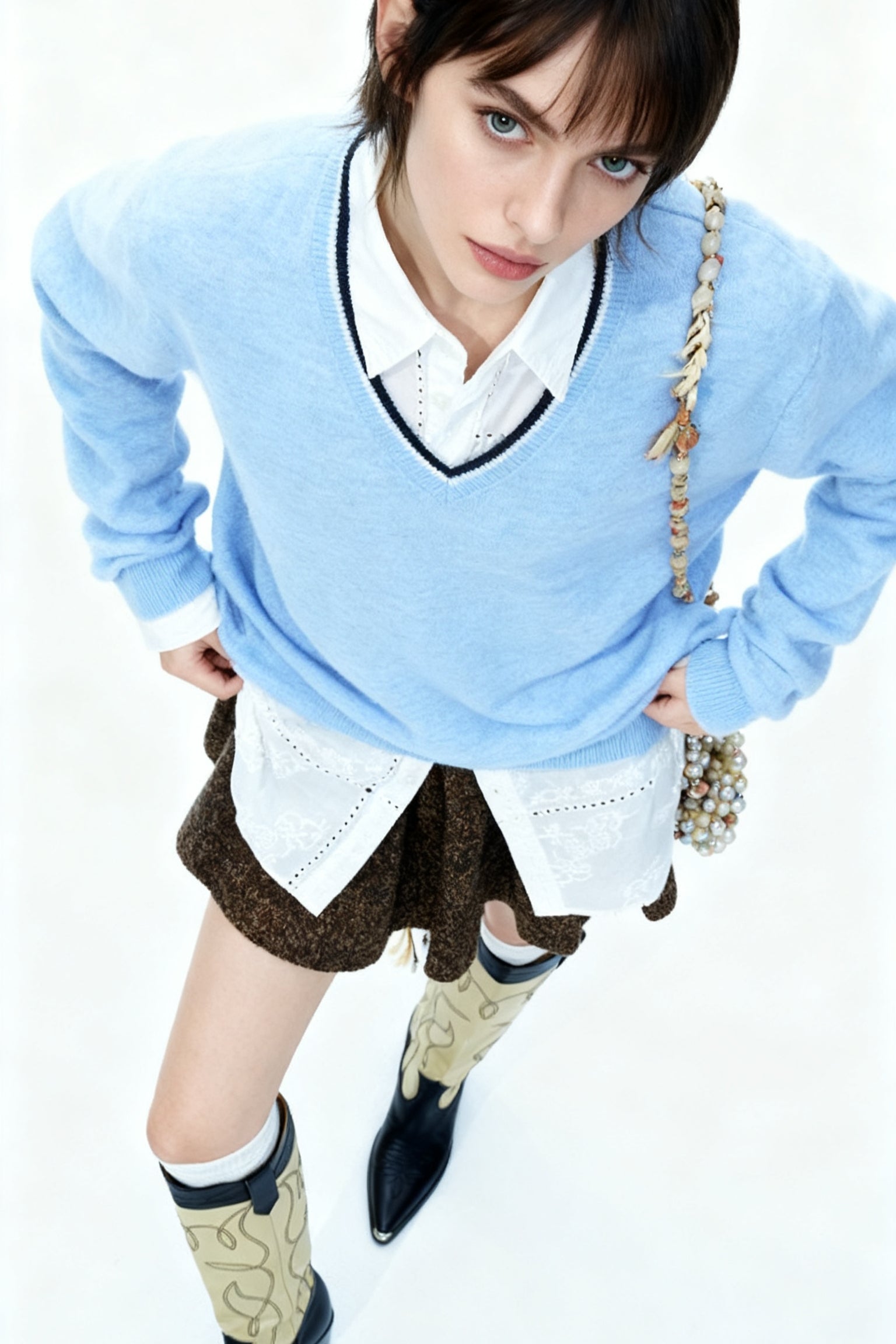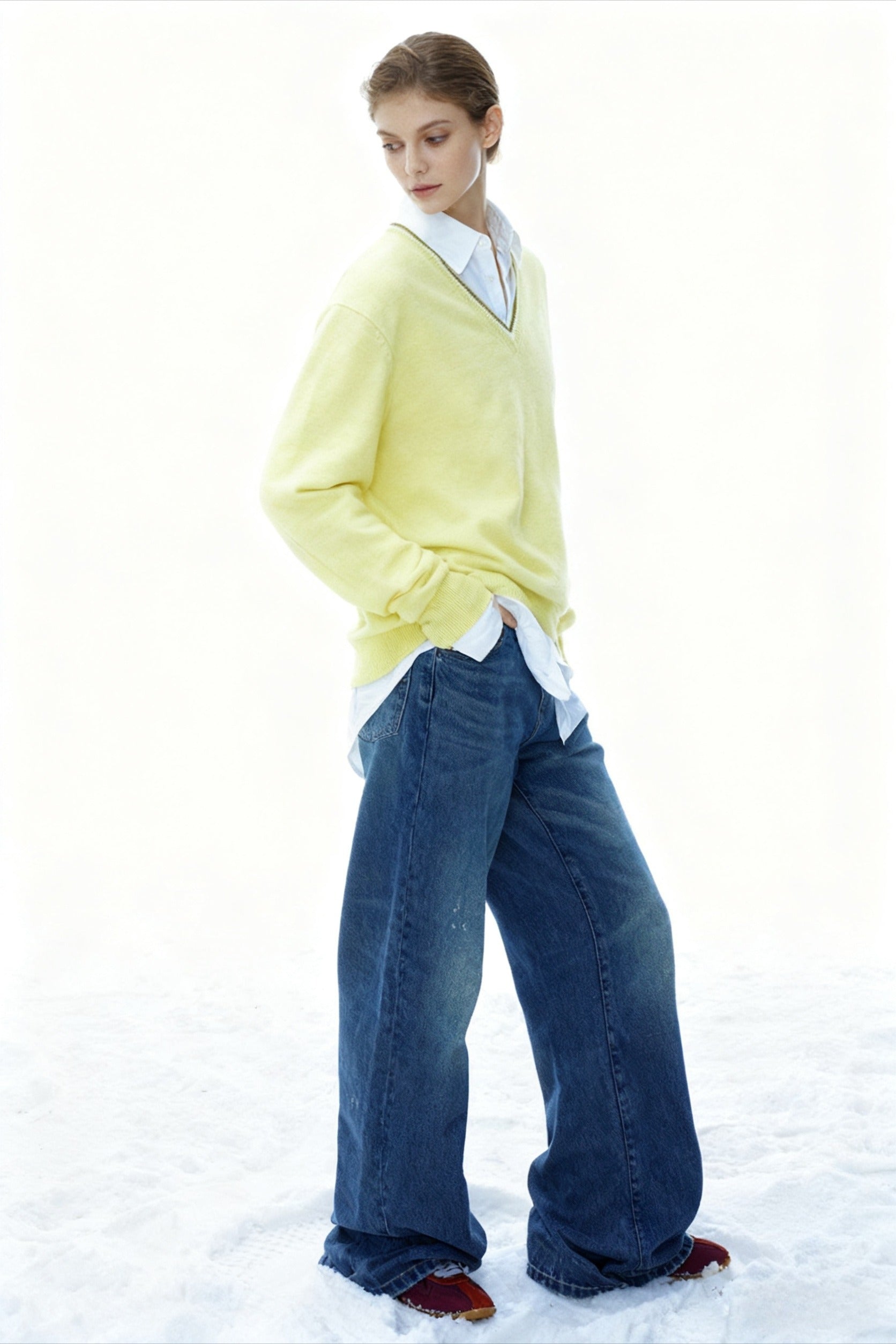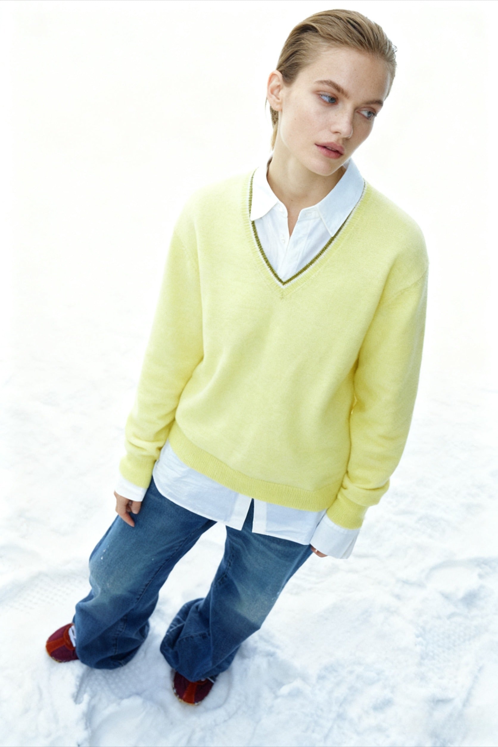 Wool blend soft touch lightweight V-neck sweater | 3 color
