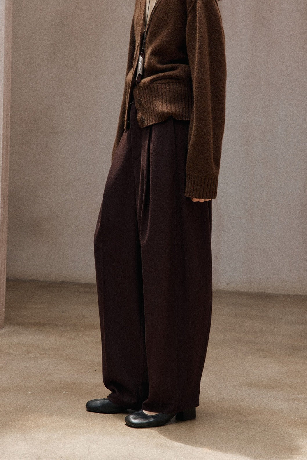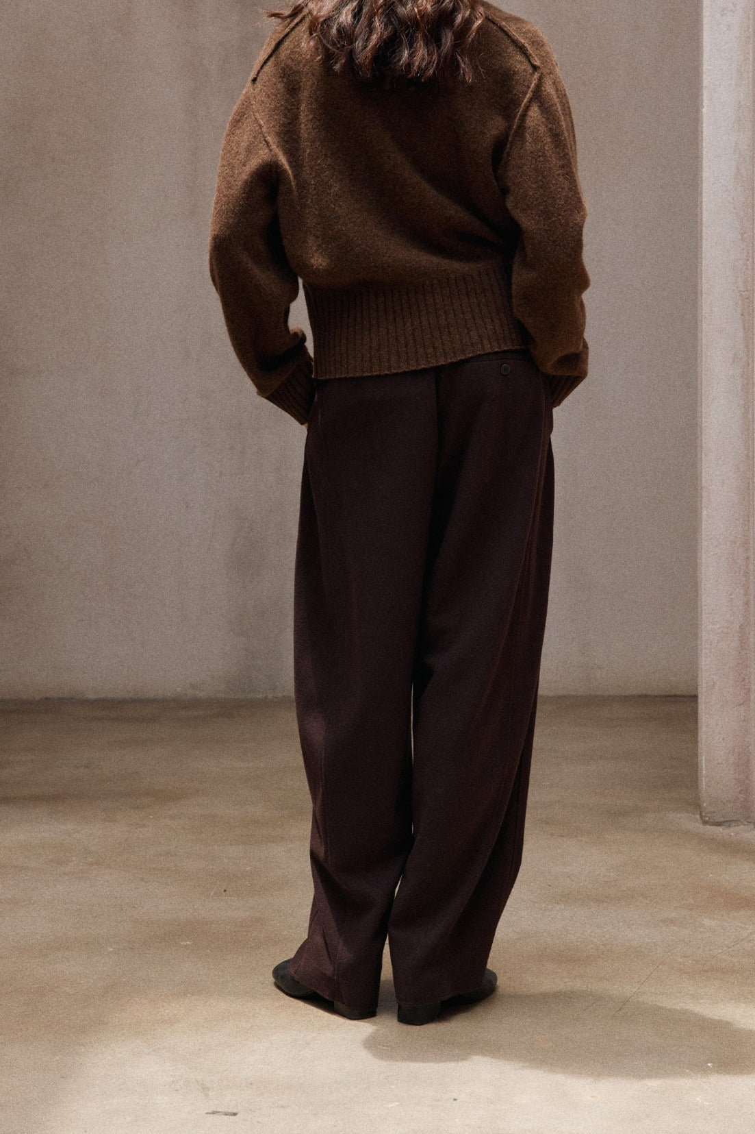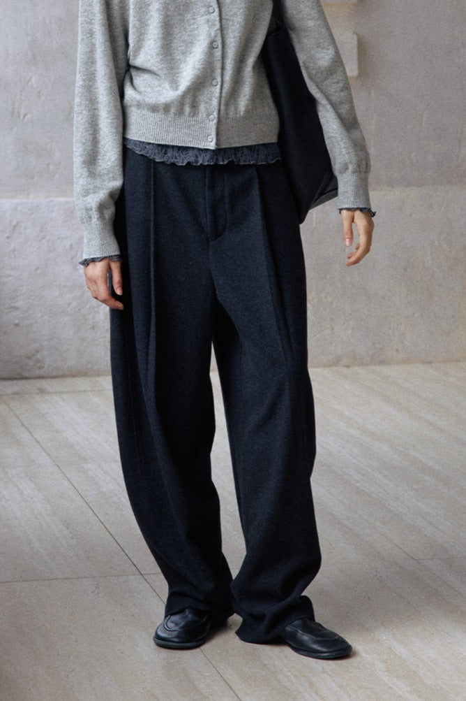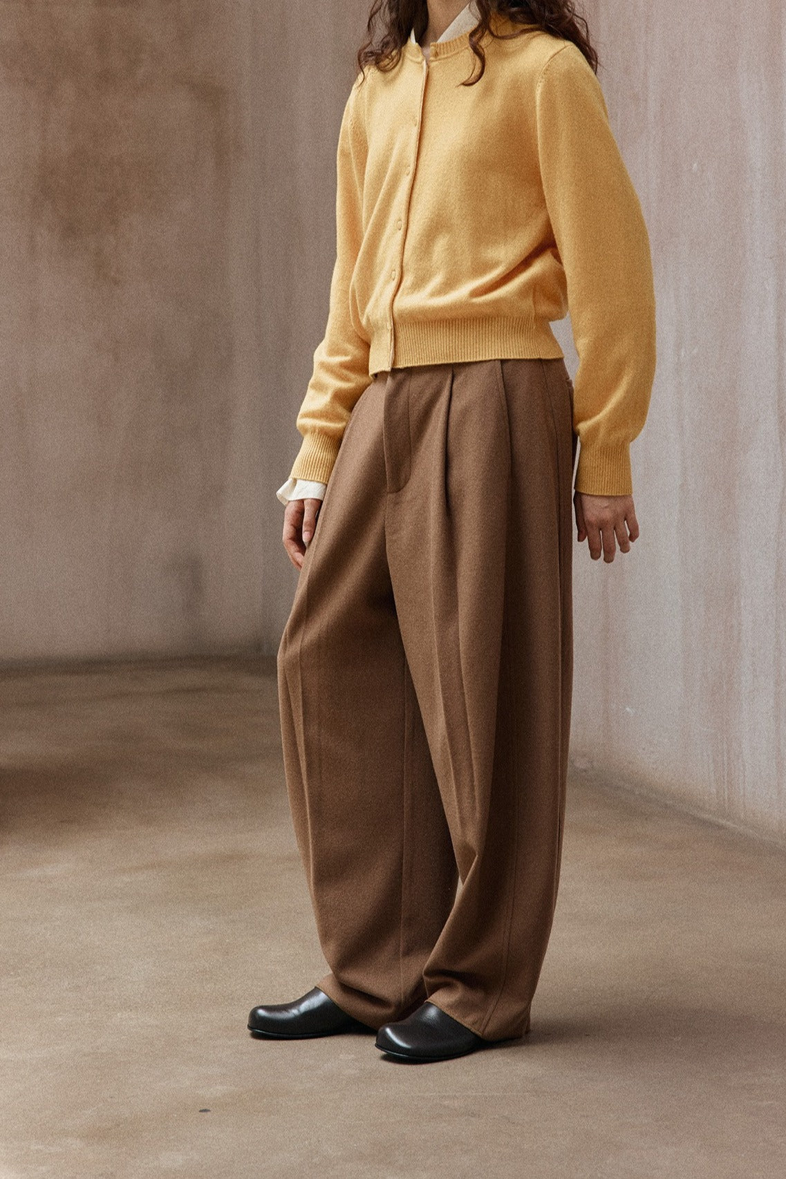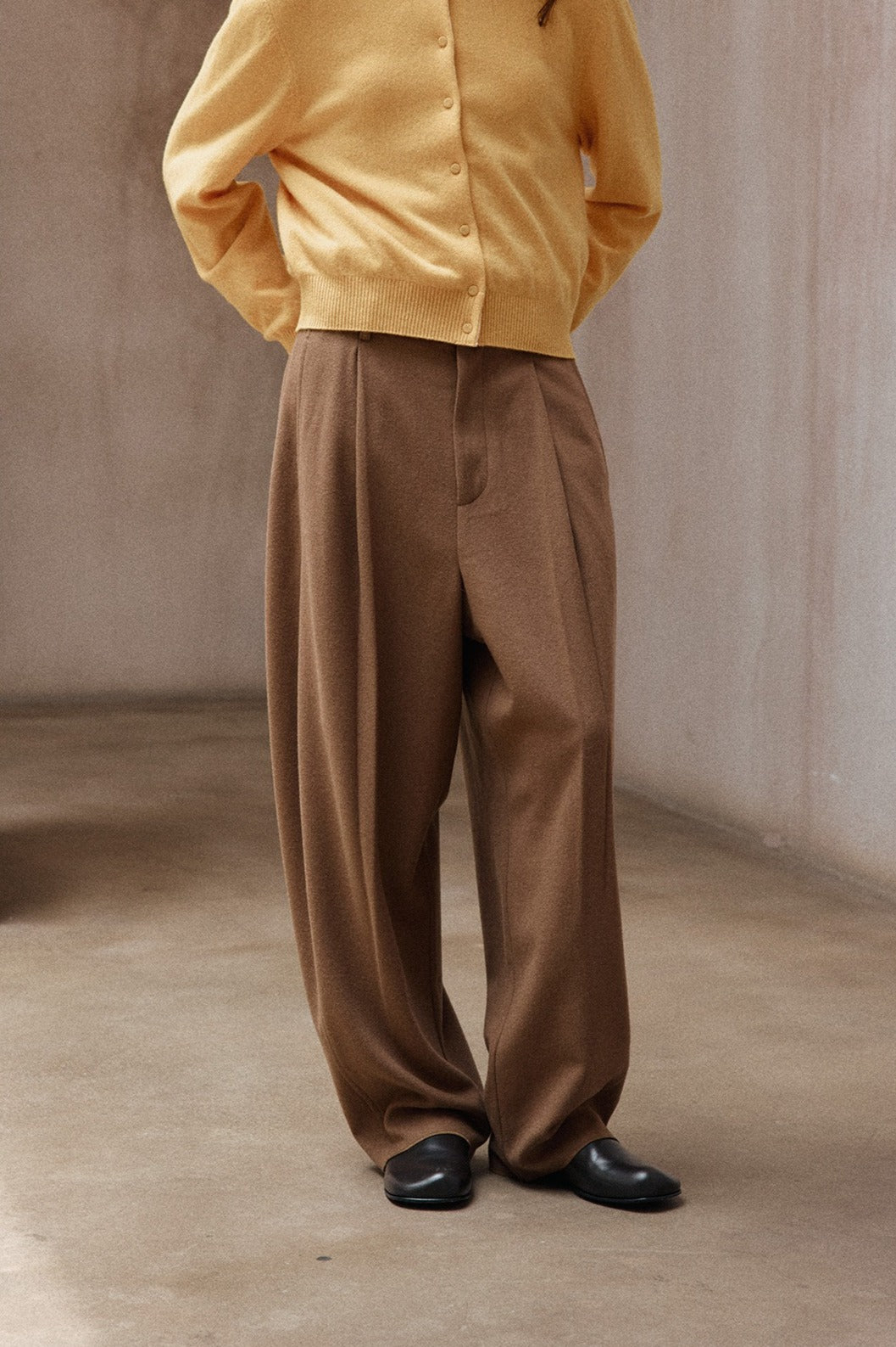 This wool-blend wide-leg banana pant features an elegant color palette, making it suitable for various occasions. The relaxed fit and smooth fabric provide comfort and style.