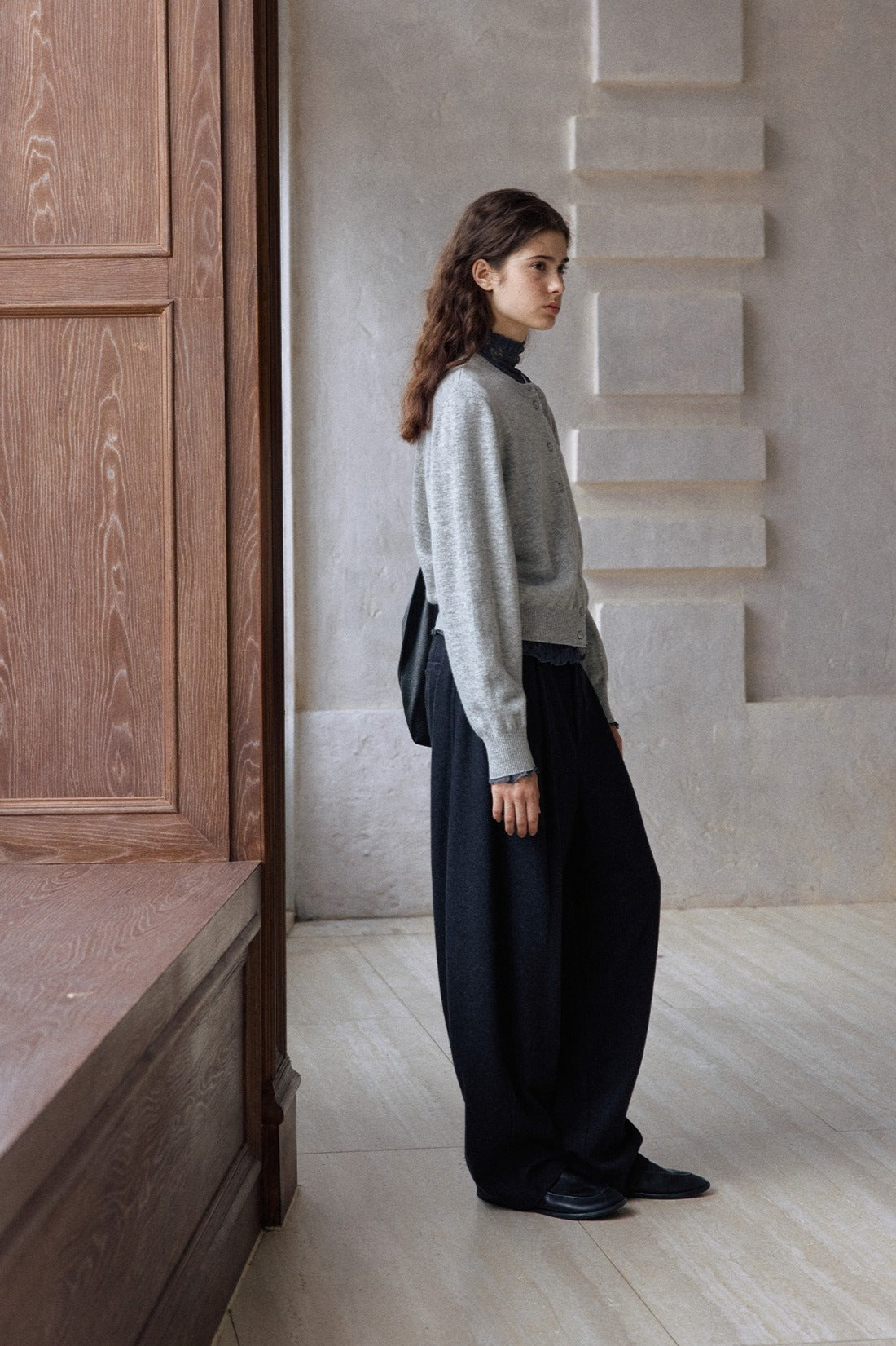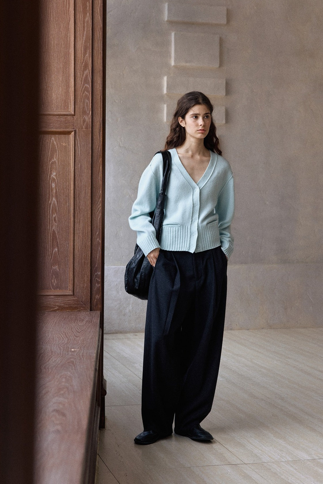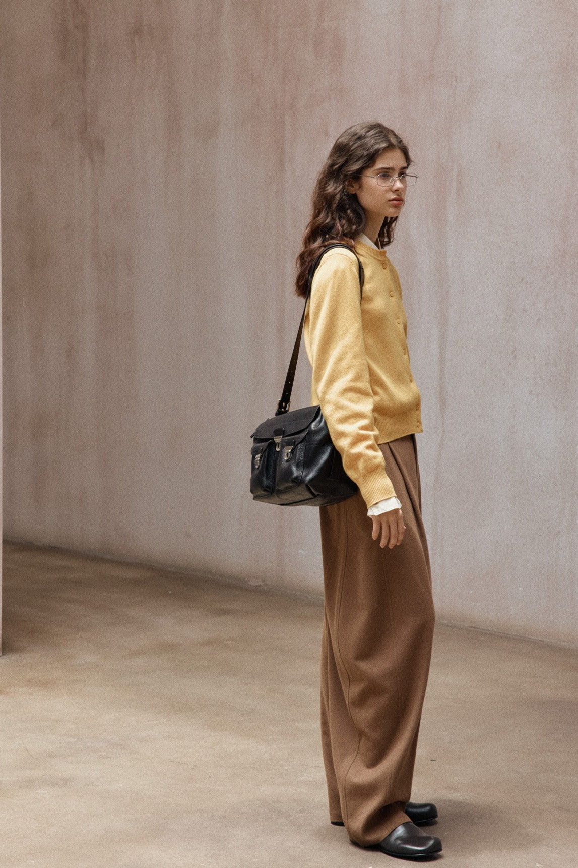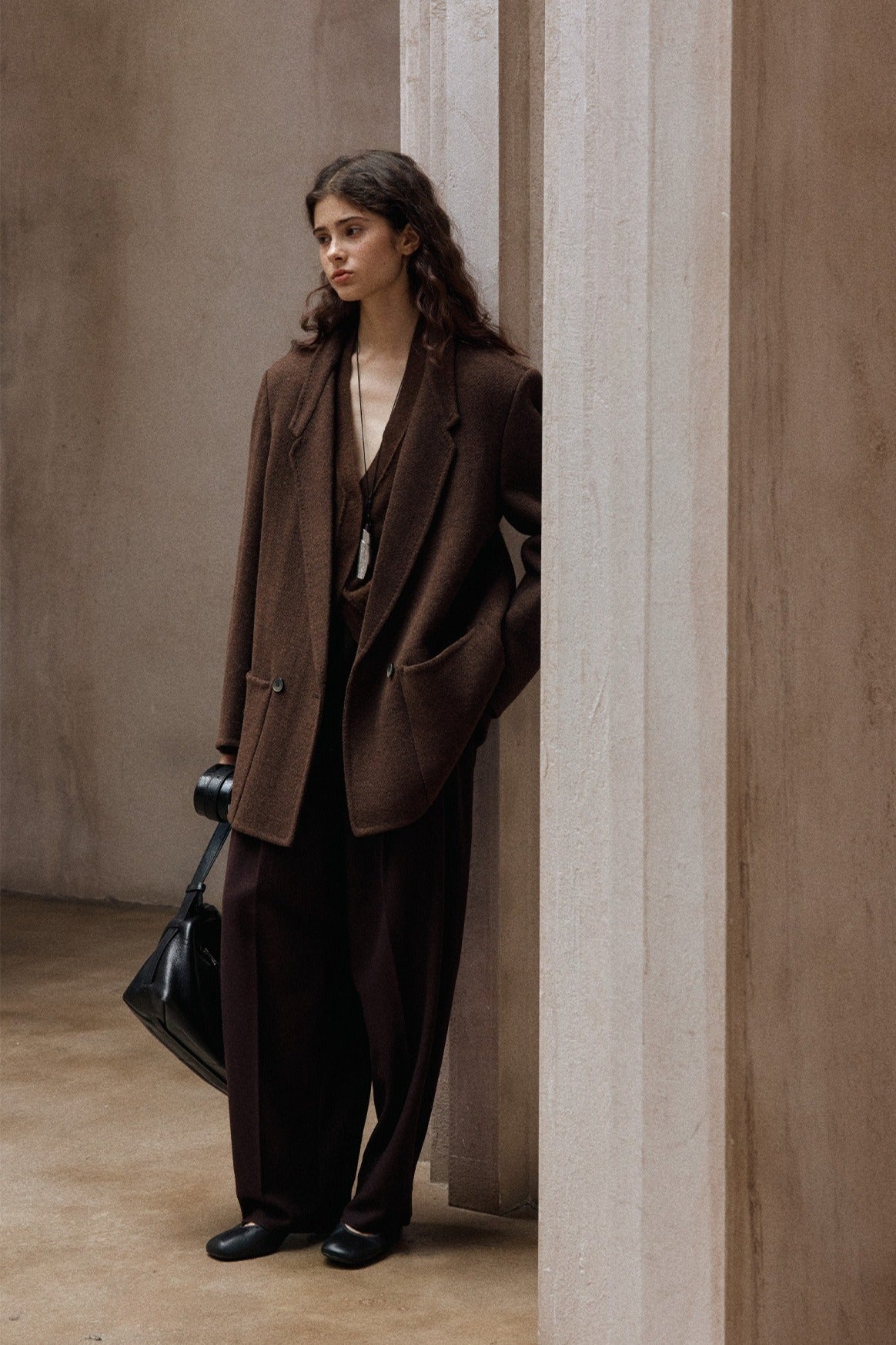 This wool-blend wide-leg banana pant features an elegant color palette, making it suitable for various occasions. The relaxed fit and smooth fabric provide comfort and style.