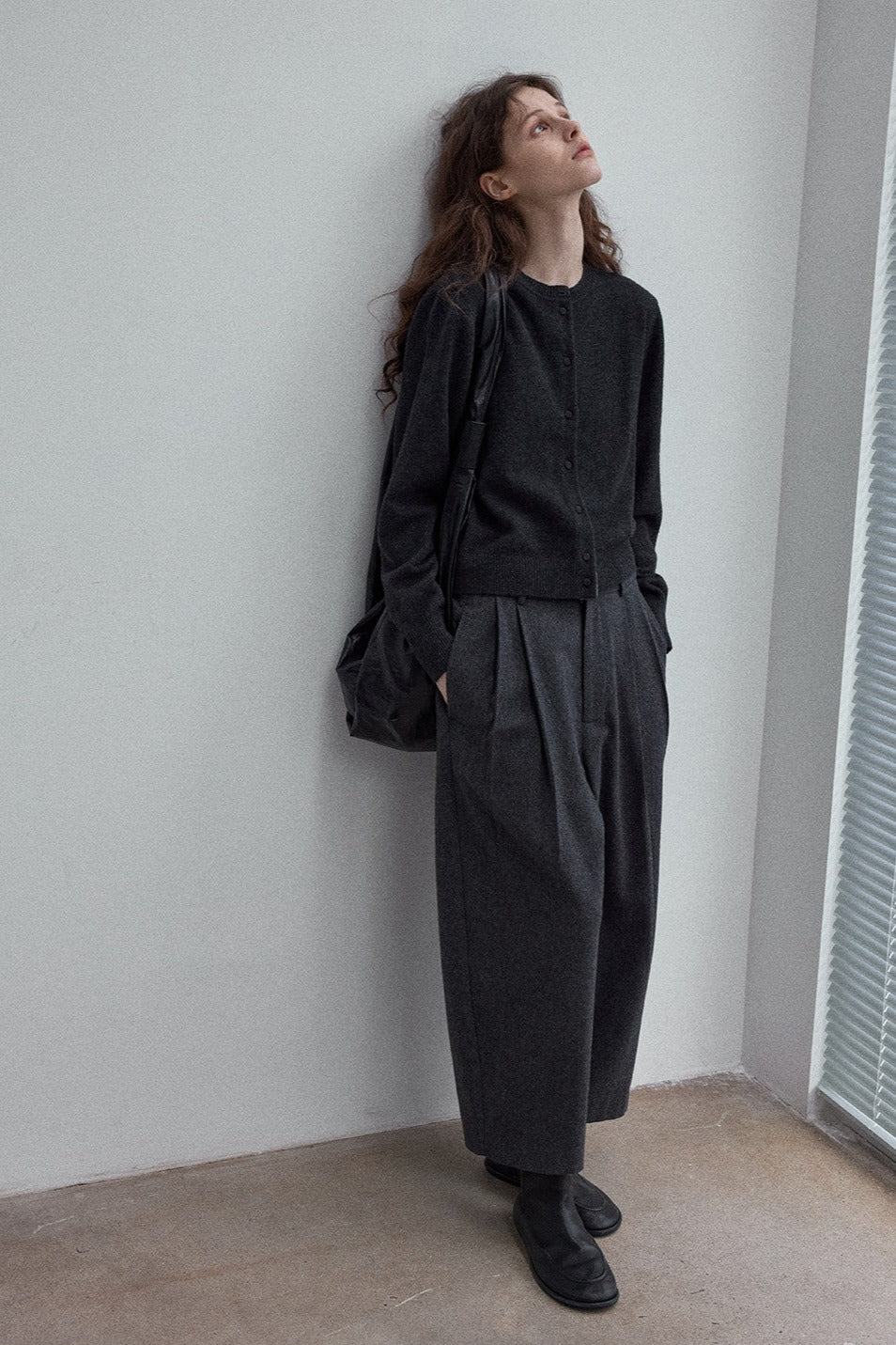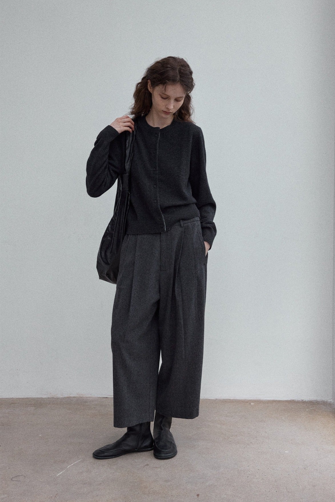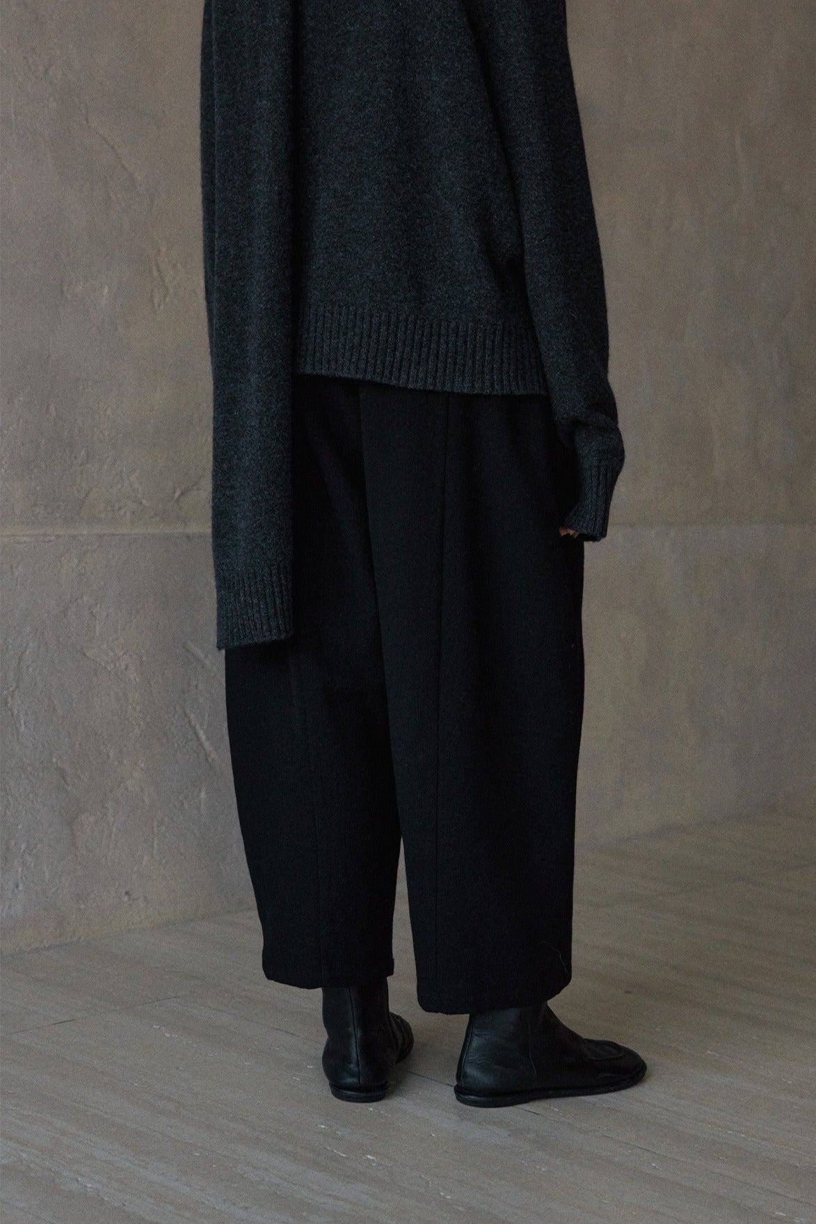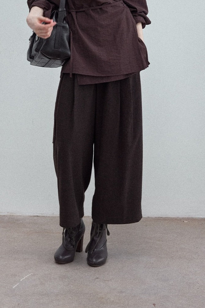 Wool blend wide-leg curved cropped pants | 3 color