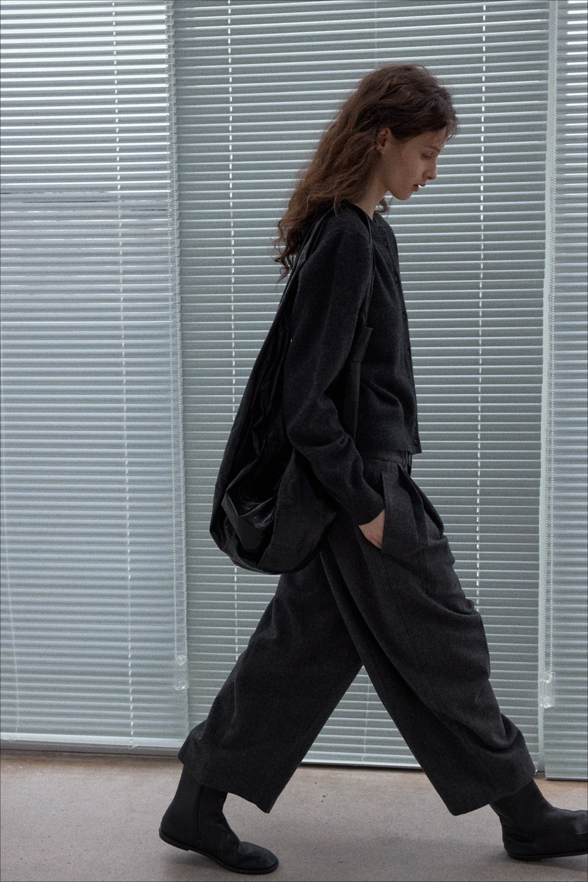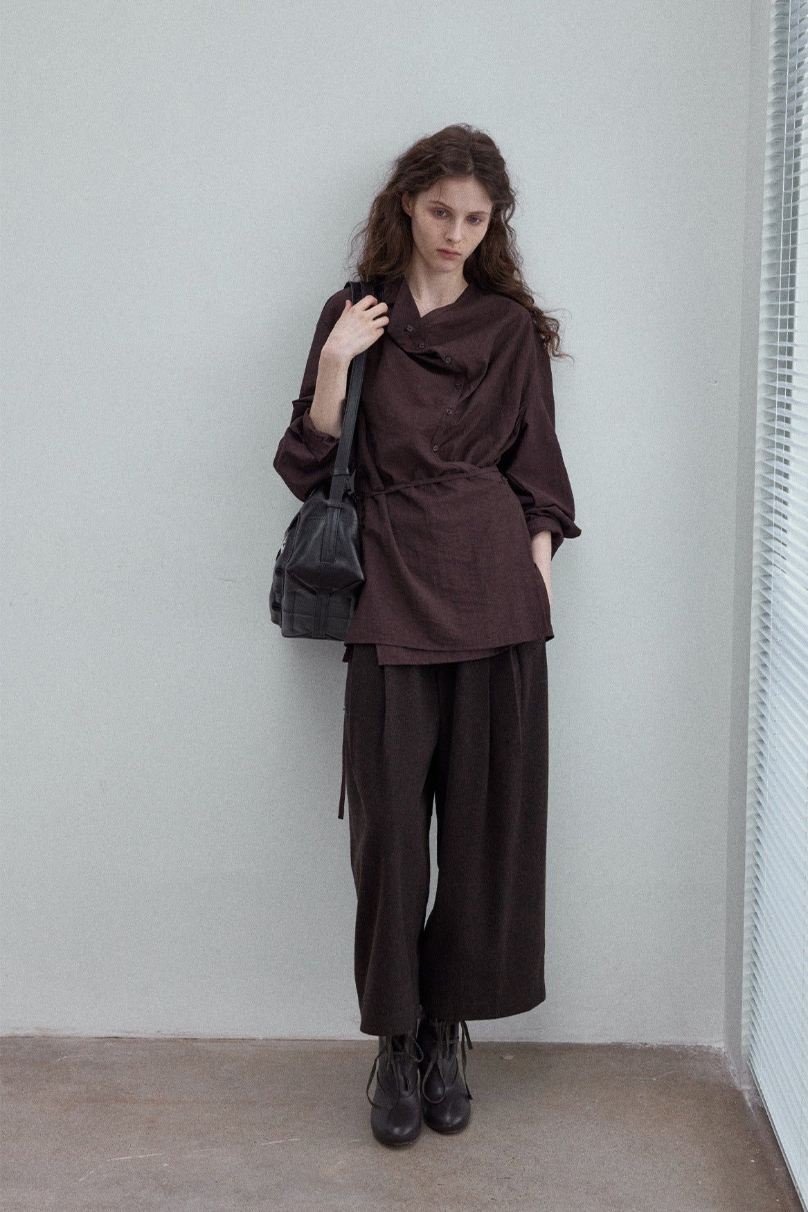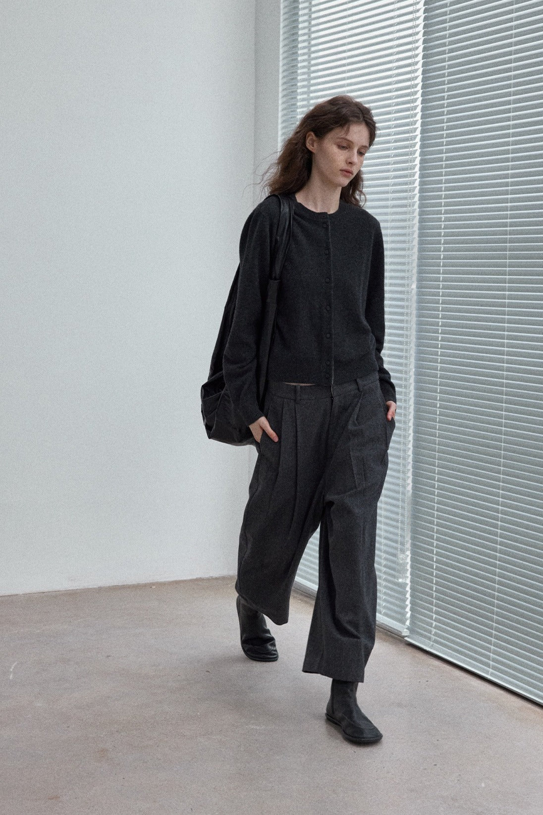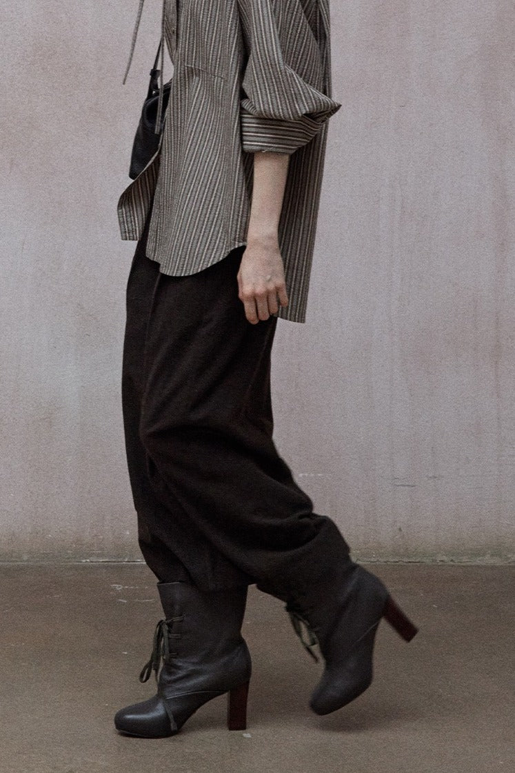 Wool blend wide-leg curved cropped pants | 3 color
